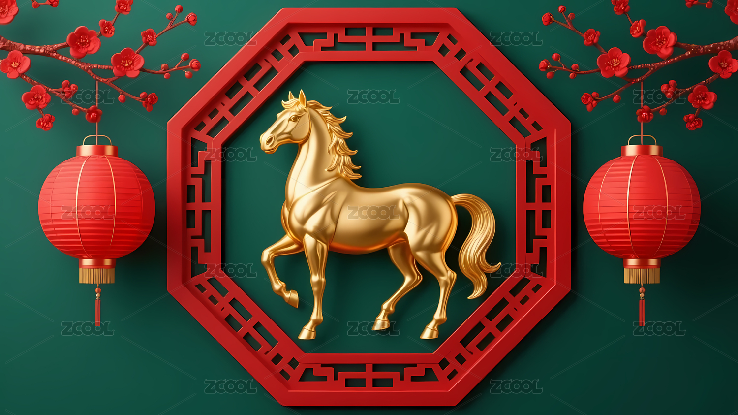 骏马,红色,农历新年,金色,春节,灯笼,喜庆,吉祥,传统,文化