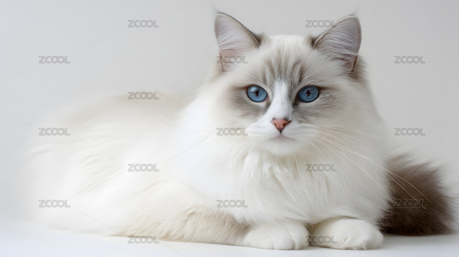 布偶猫肖像蓬松长毛蓝眼灰白摄影
