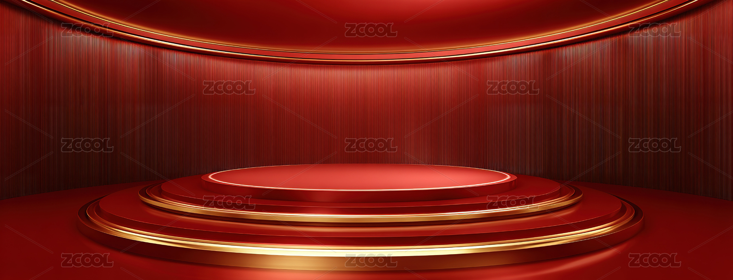 简约红色喜庆红光圆台电商展示舞台