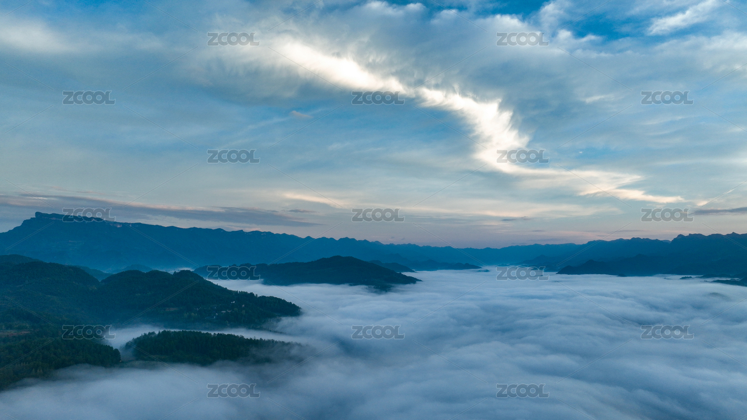 笼罩在晨雾中的重庆万盛黑山谷莽莽群山