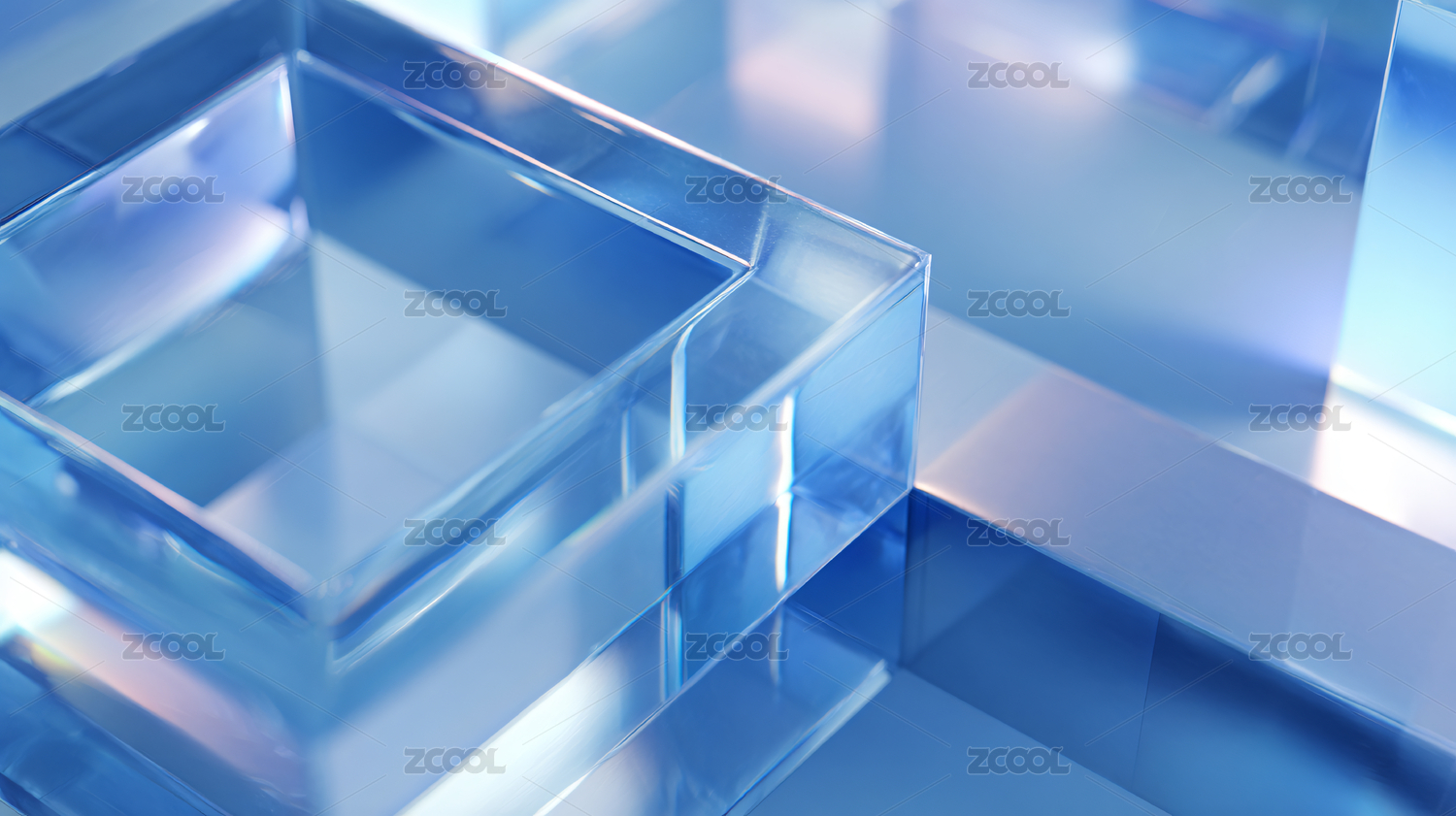 蓝色透明几何方块叠加