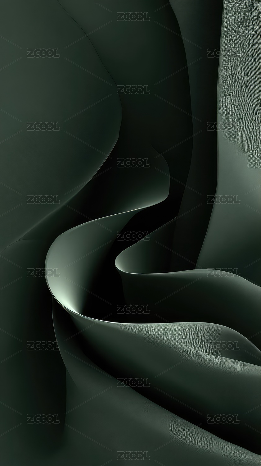蓝绿色纸张弯曲形成波浪形状富有质感