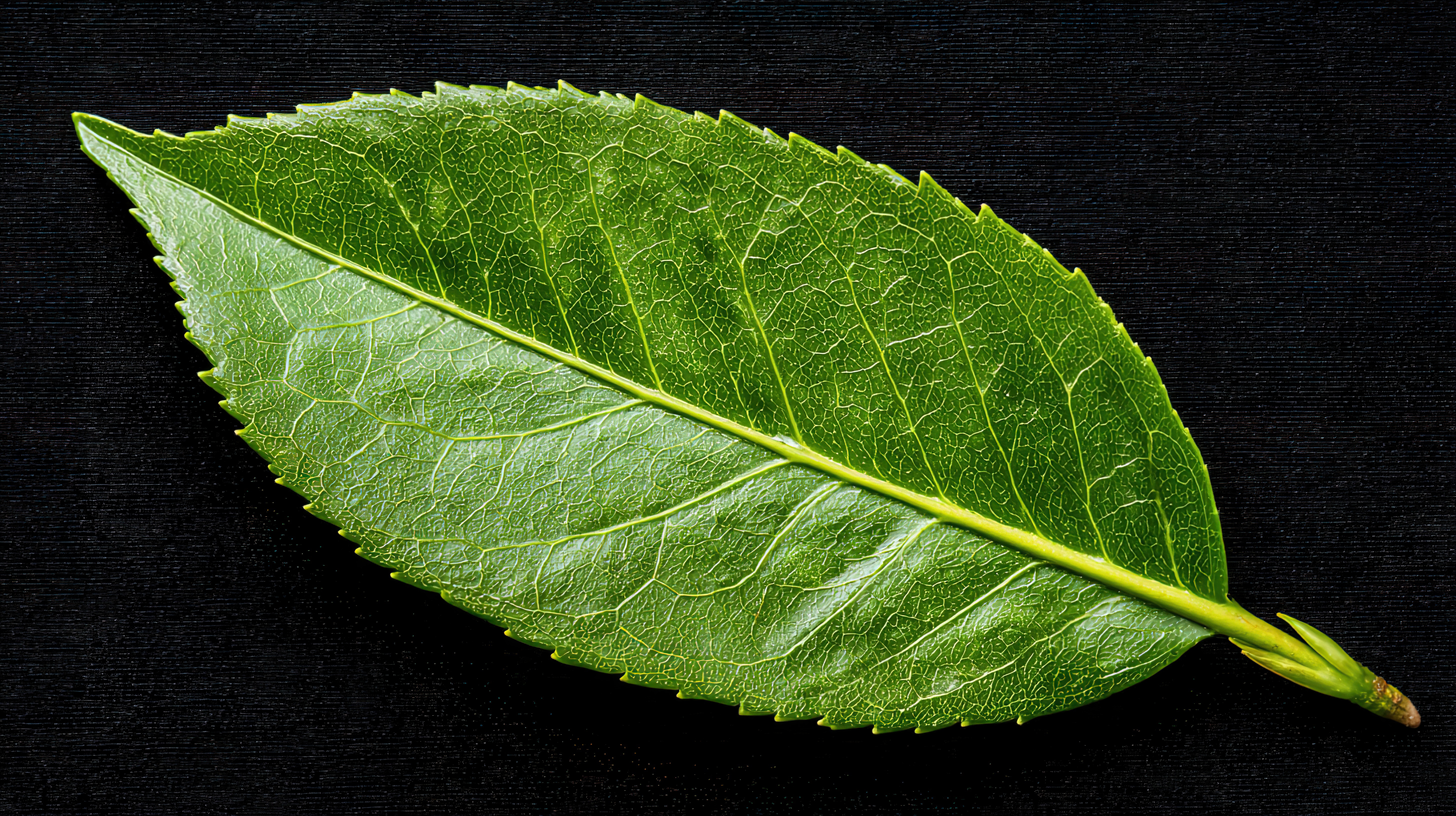 黑色背景上的一片绿叶