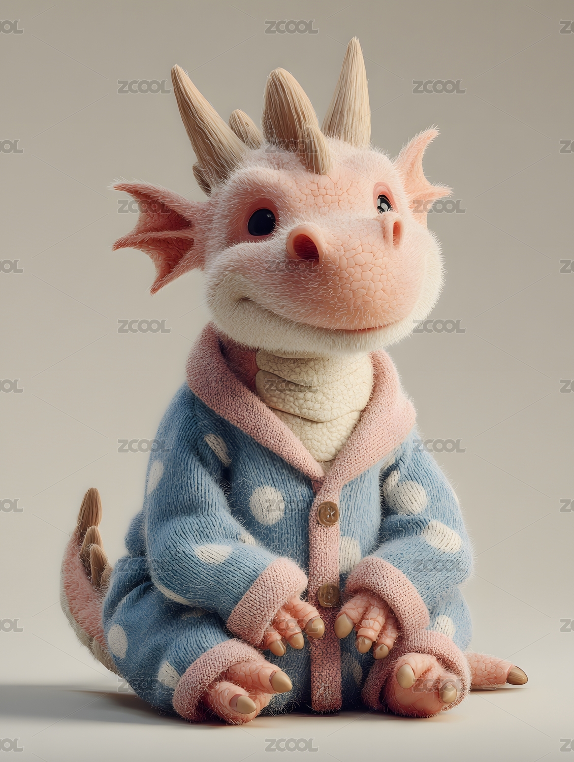 粉红小龙睡衣萌照温馨场景