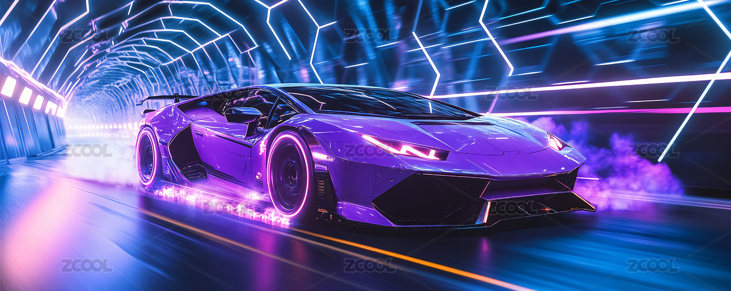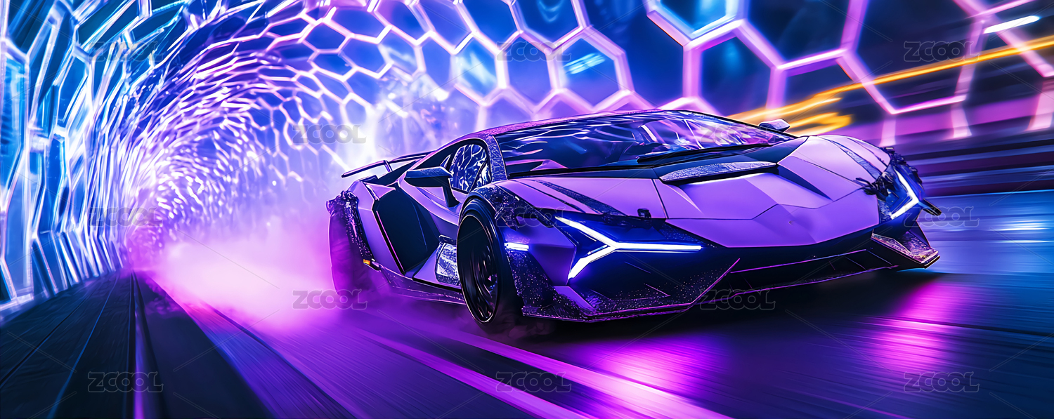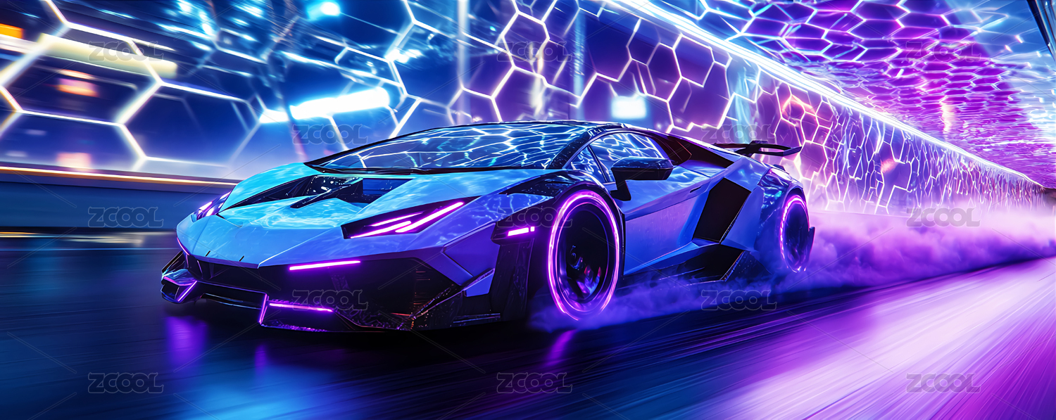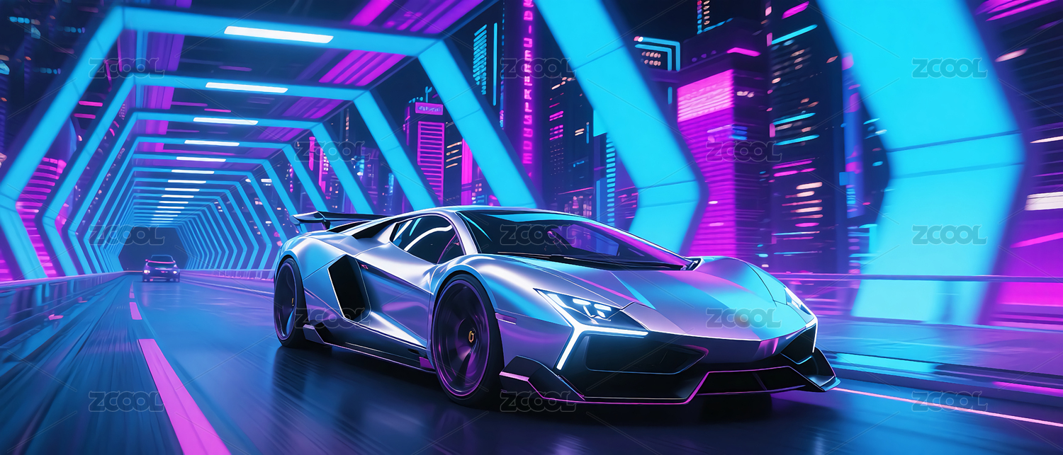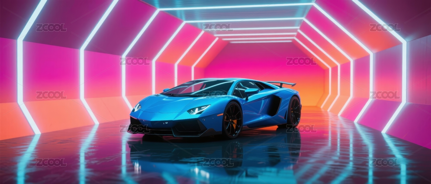 主视觉,商业,场景,背景,跑车,蓝色,霓虹,隧道,汽车,未来