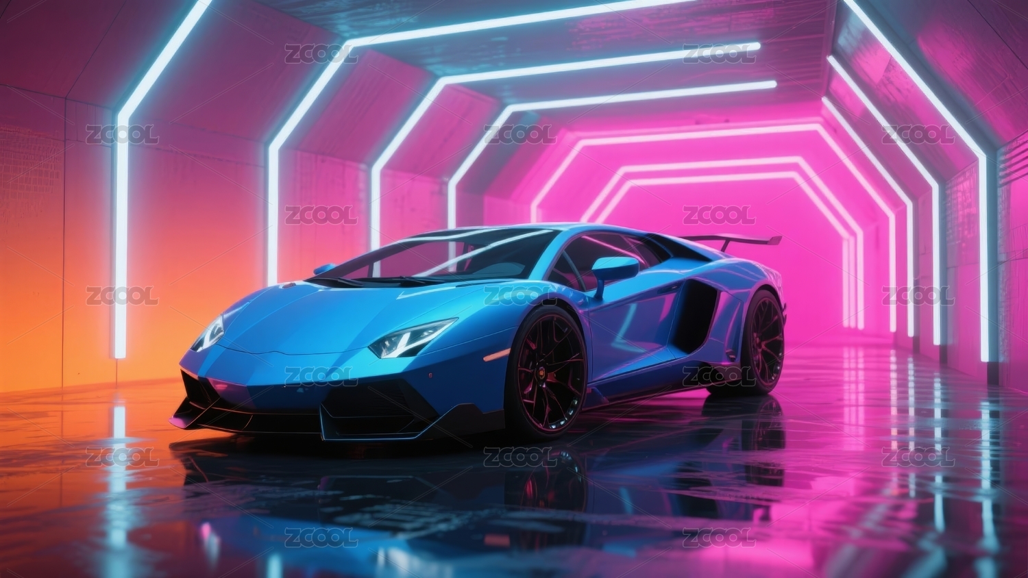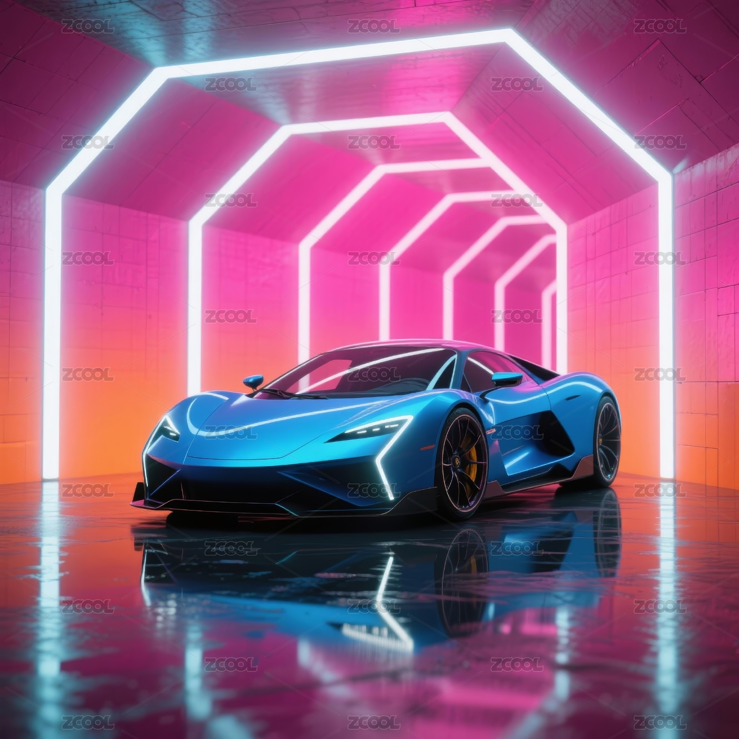 蓝色跑车霓虹隧道场景