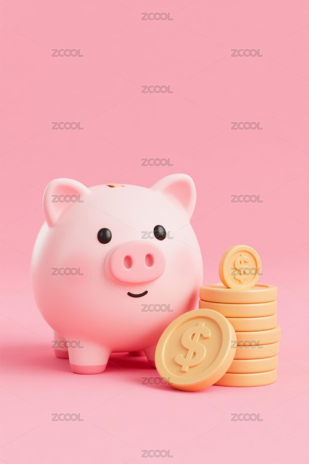 主视觉,商业,小猪,存钱罐,可爱感,理财,场景,硬币,美元,储蓄