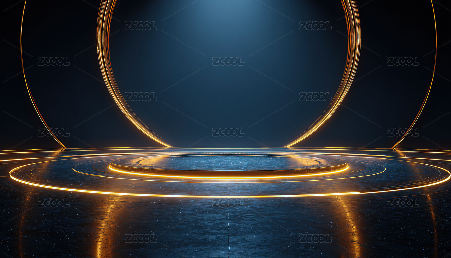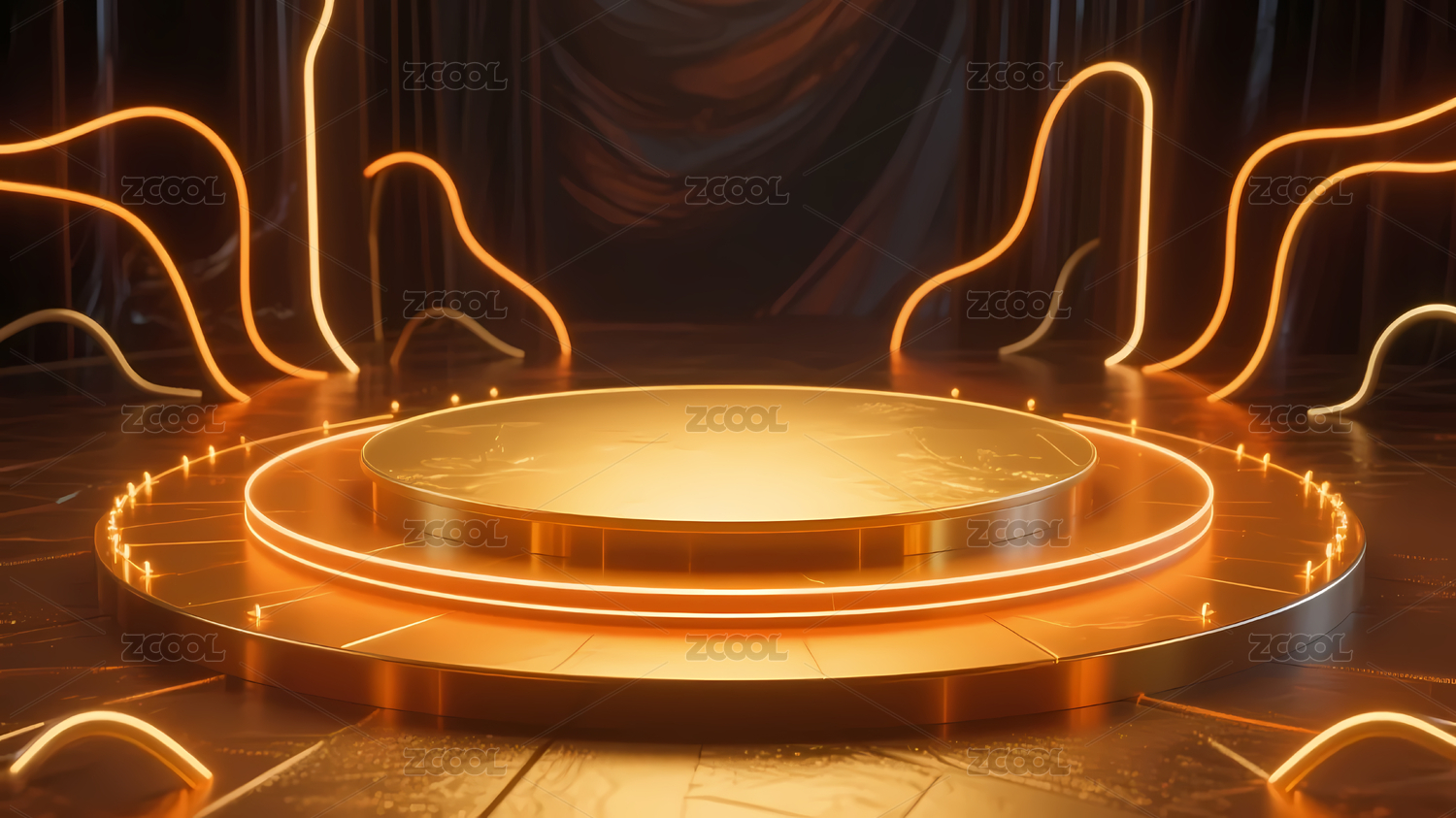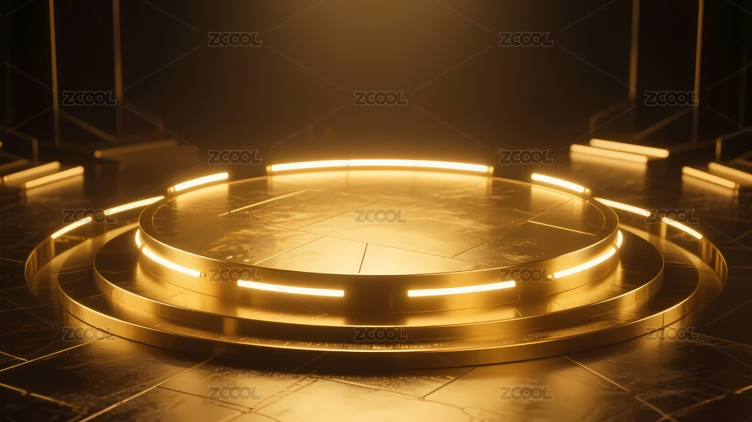 黄色,背景,金色,圆形,平台,灯光,装饰,深色,现代,科技