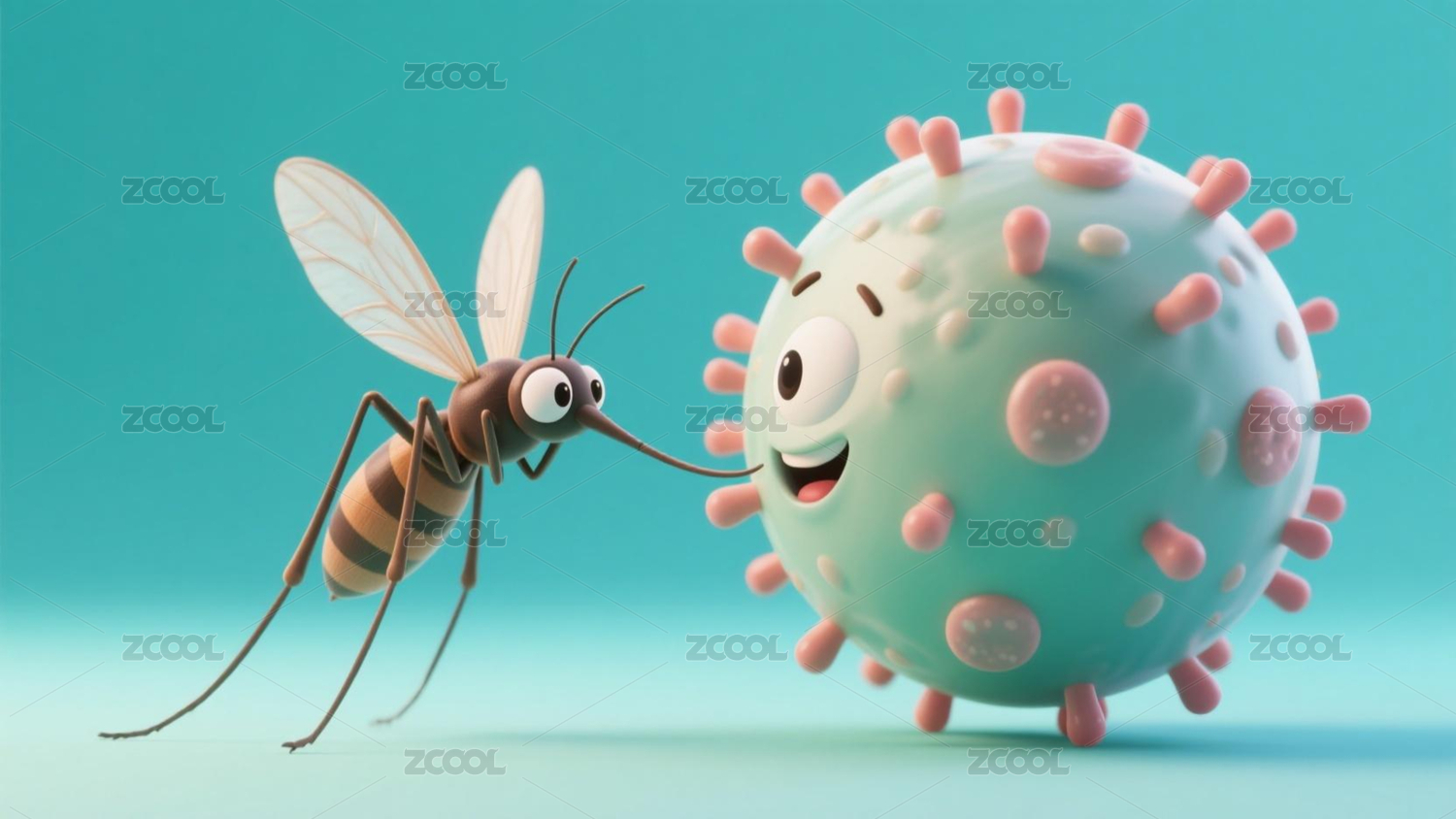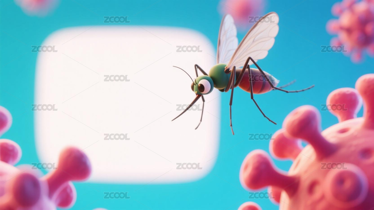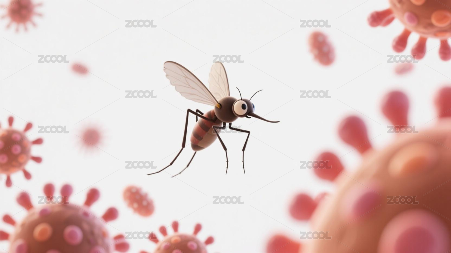 蚊子与周围病毒的特写画面