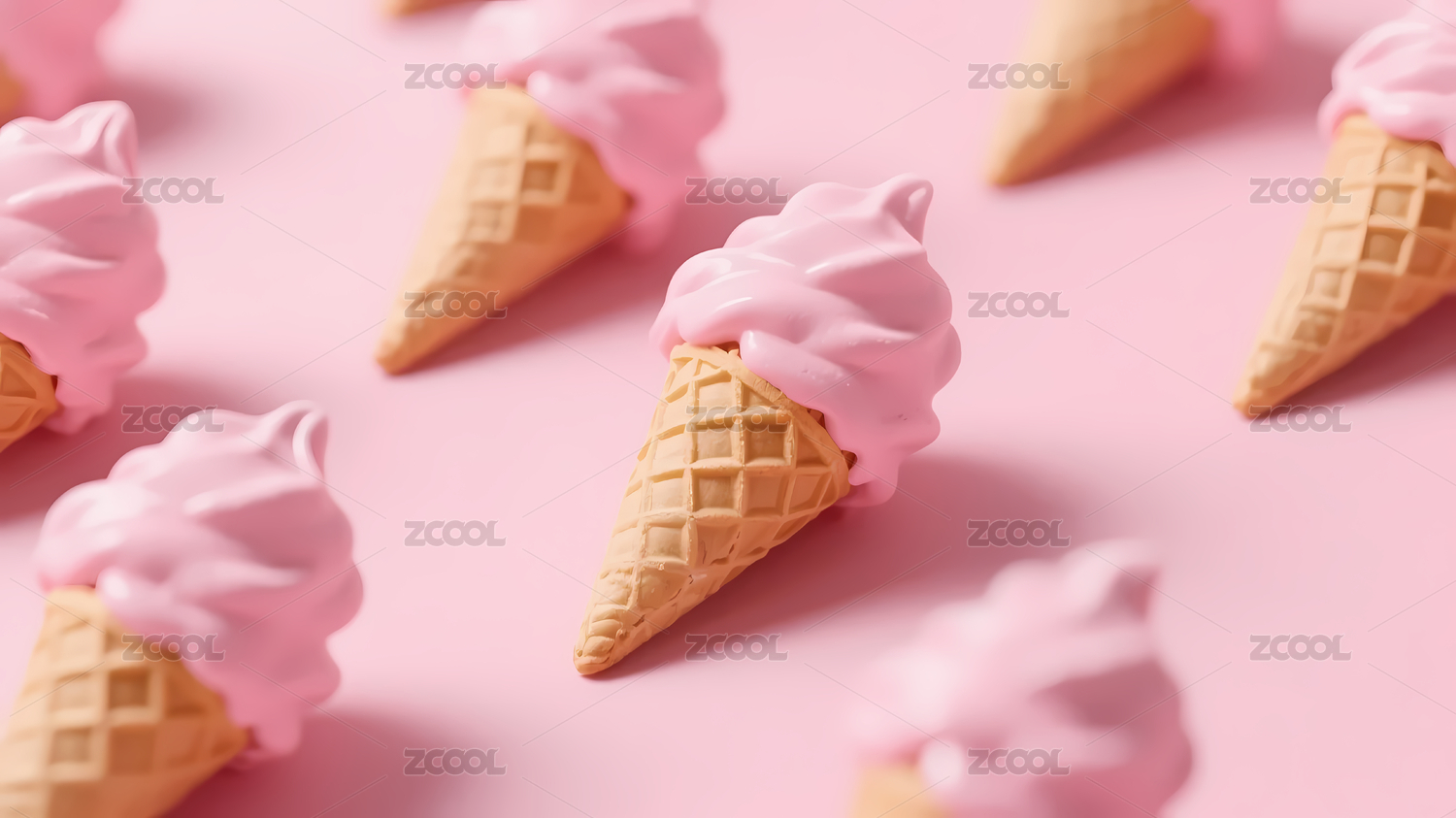 粉色冰淇淋蛋筒排列