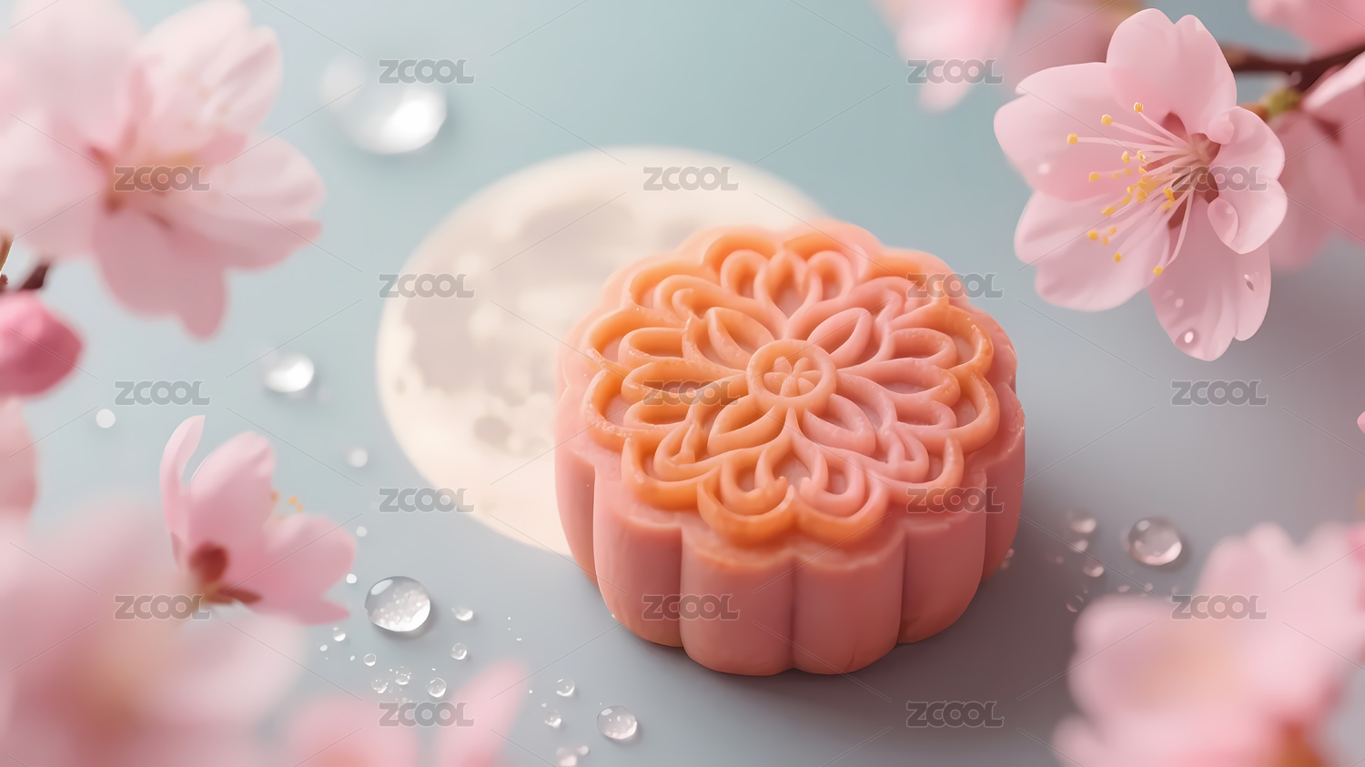 月饼与粉色樱花装饰