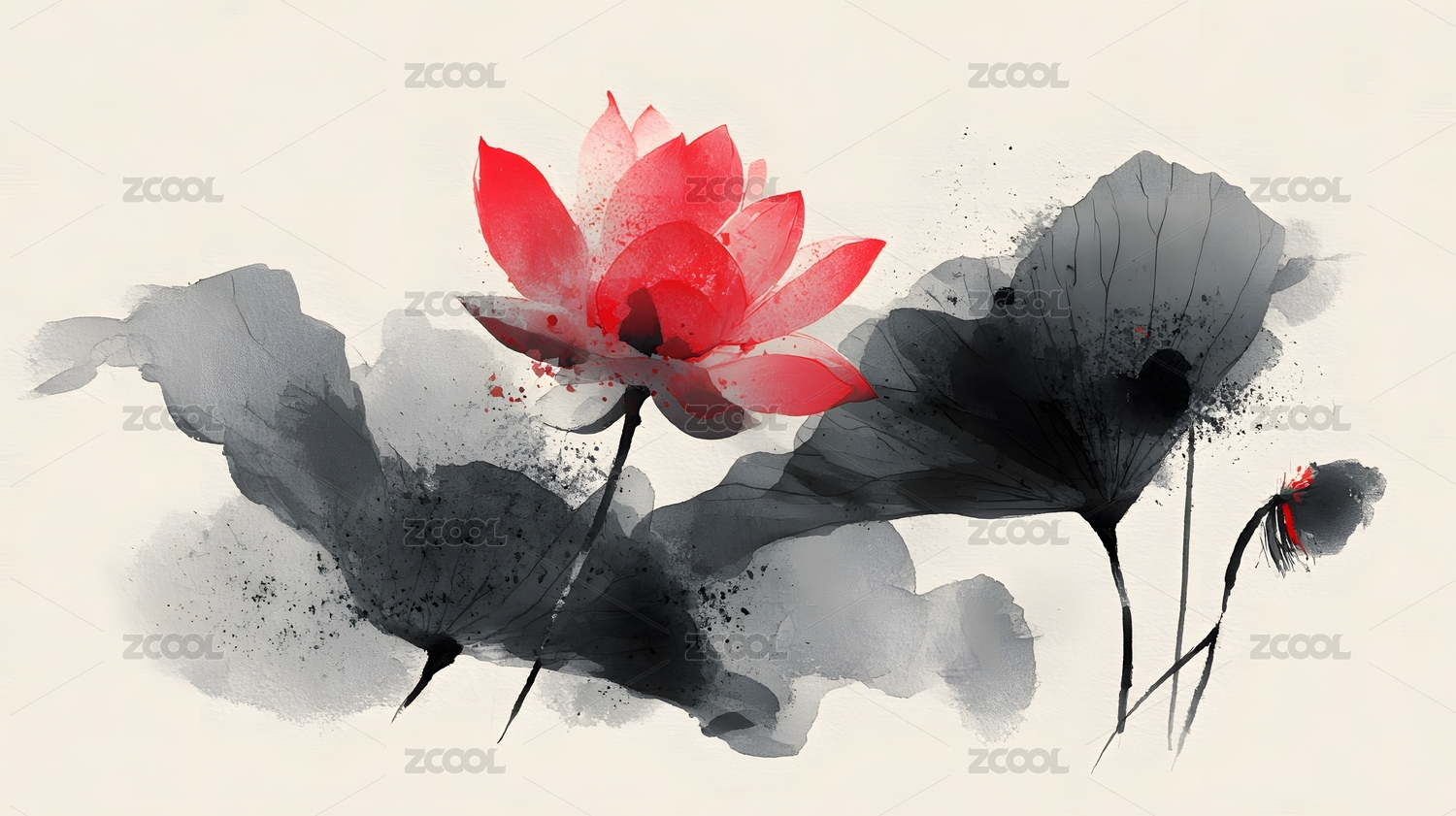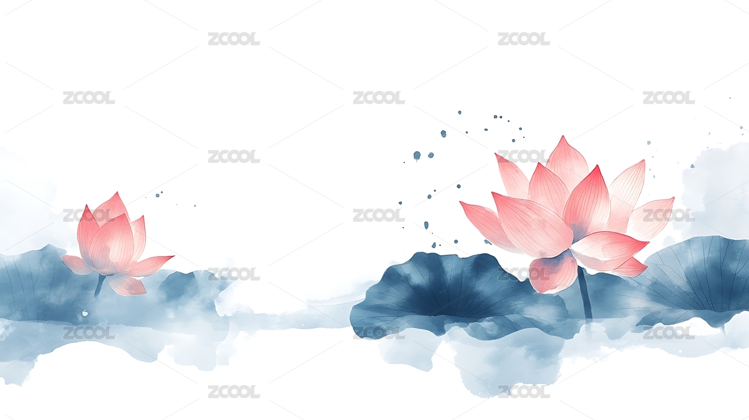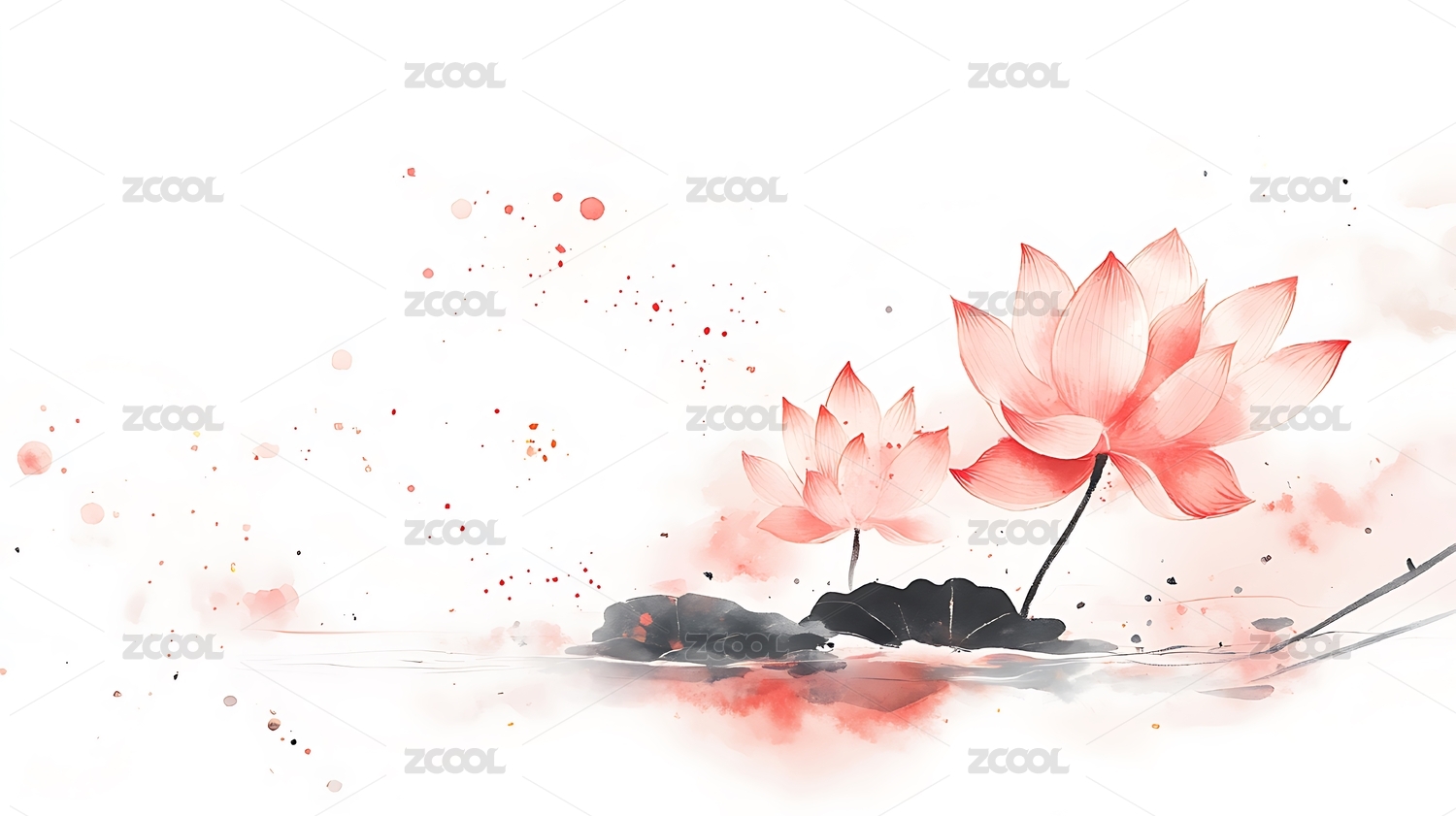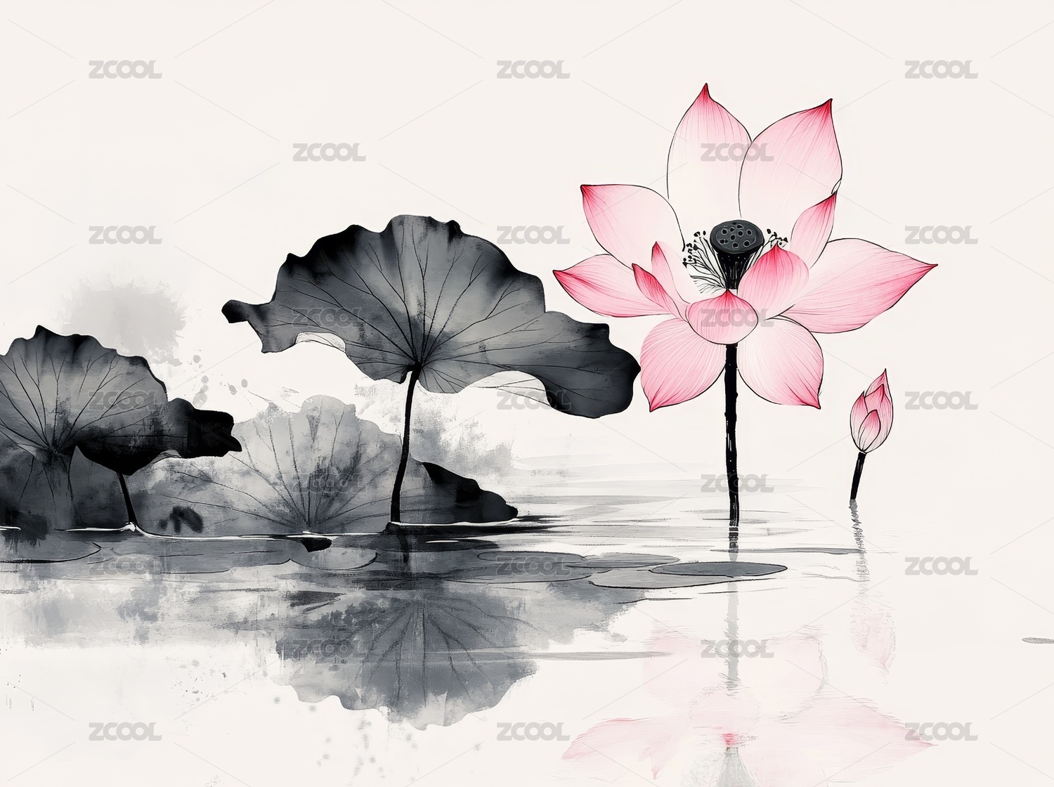 粉色,绘画,艺术,意境,莲花,水墨,唯美,优雅,荷叶,国画