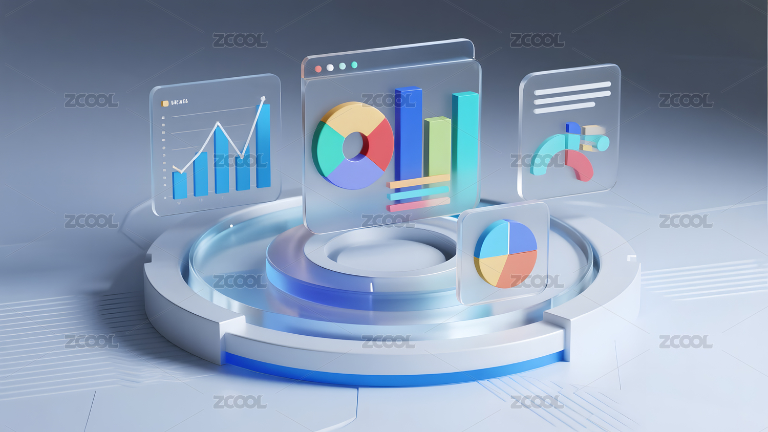 趋势图,科技,图标,毛玻璃,紫色,蓝色,底座,等距,白色,背景