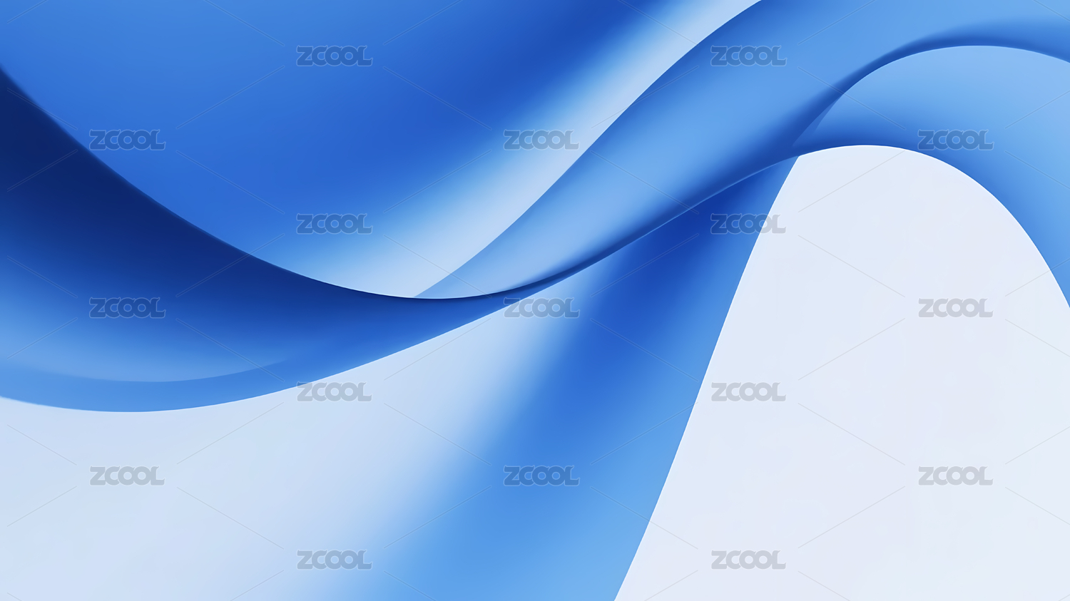 蓝色背景下白色飘带蜿蜒呈现简约治愈的视觉