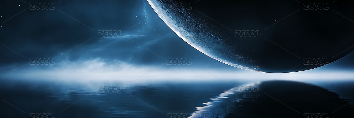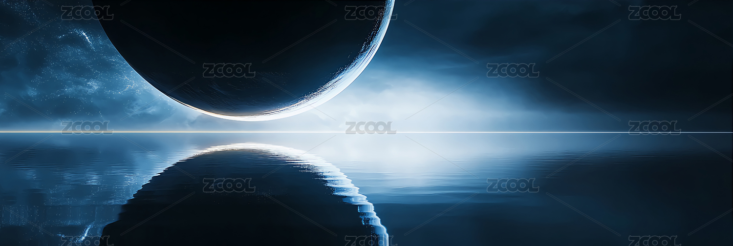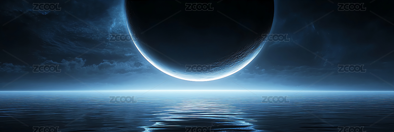 蓝色,科技,星球,背景,三维,场景,夜空,地平线,光束,闪亮