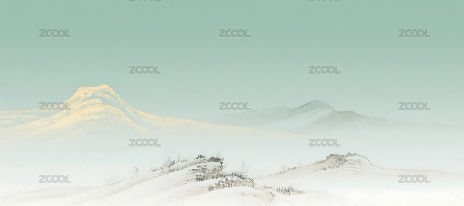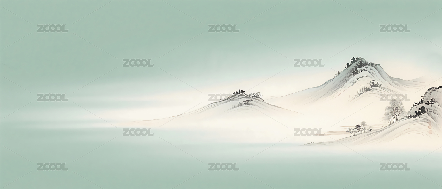 水墨画,写意,抽象,绿色,风景,天空,地形,树木,高山,云雾