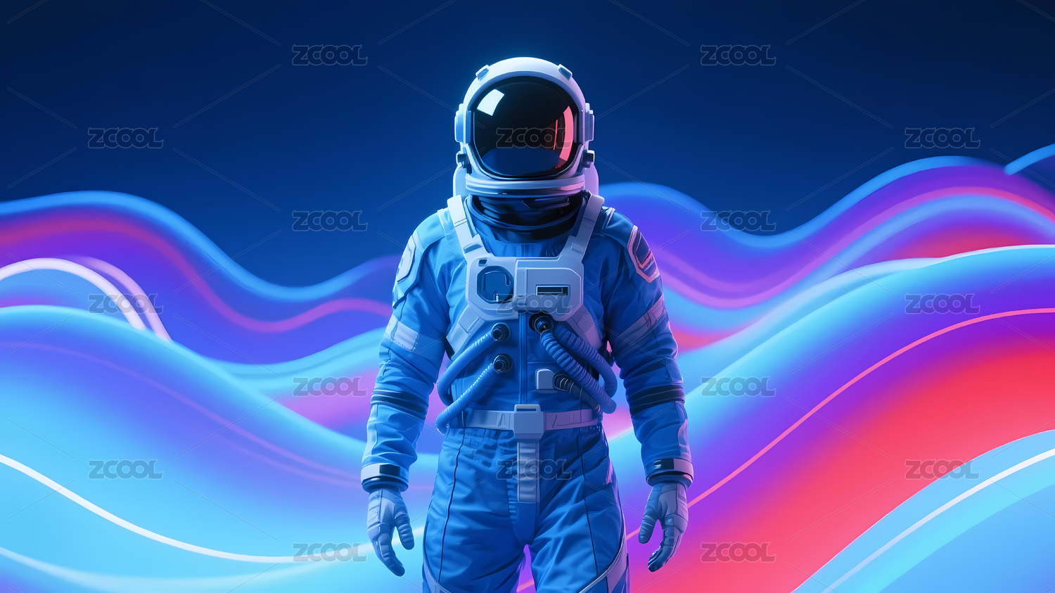 宇航员与波浪背景