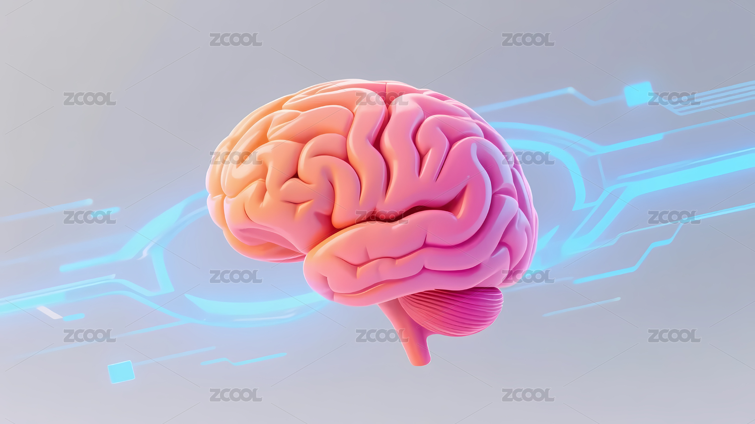 粉色大脑模型与电路板背景