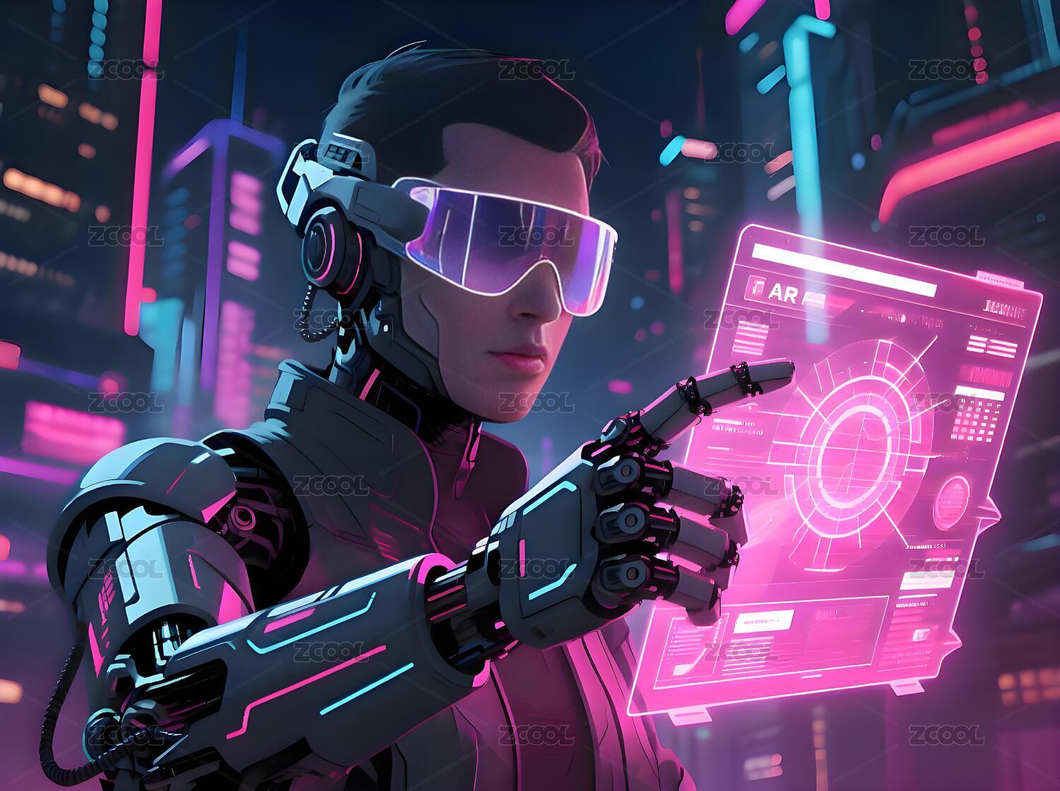 赛博朋克游戏人物虚拟虚构未来科幻发光特效
