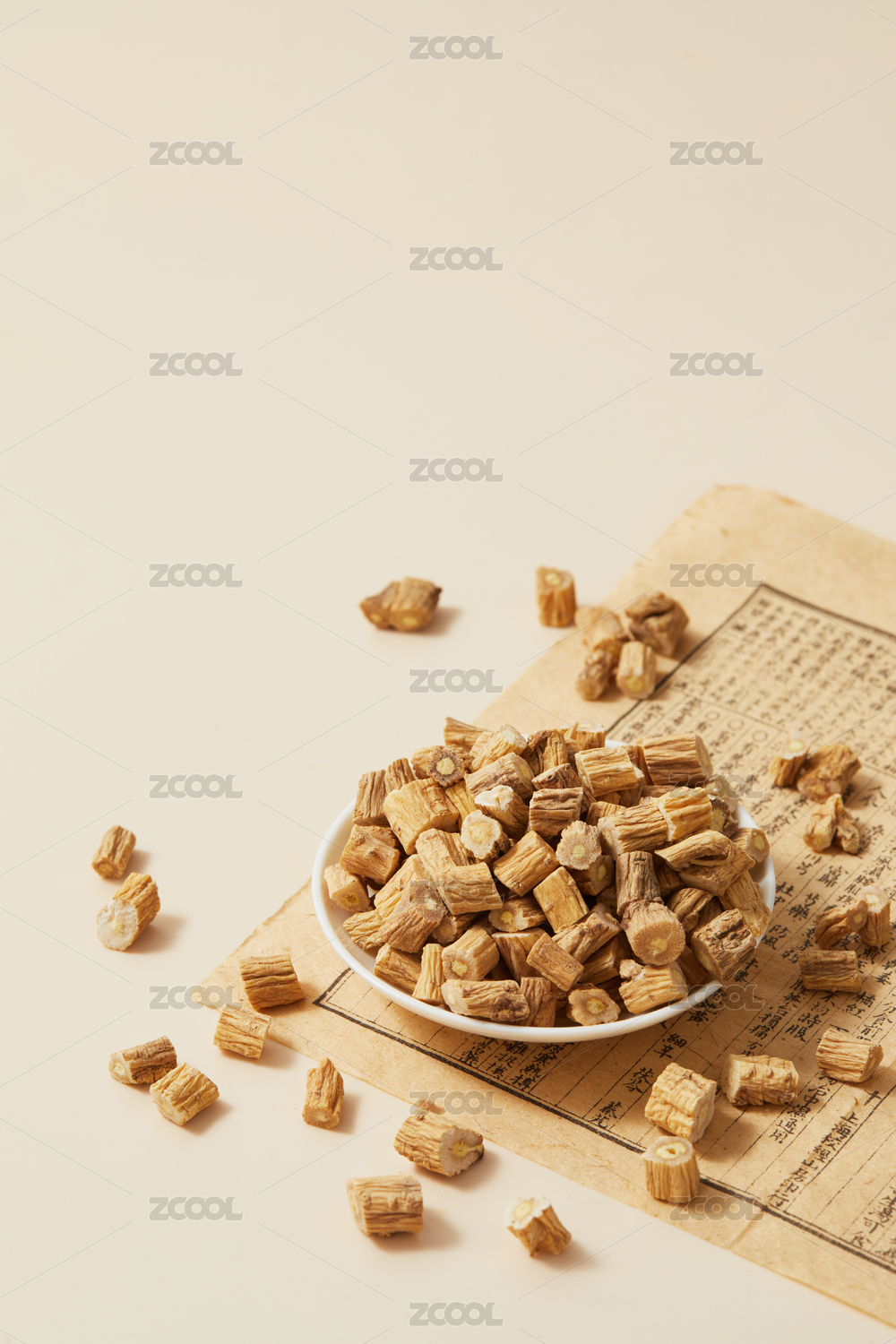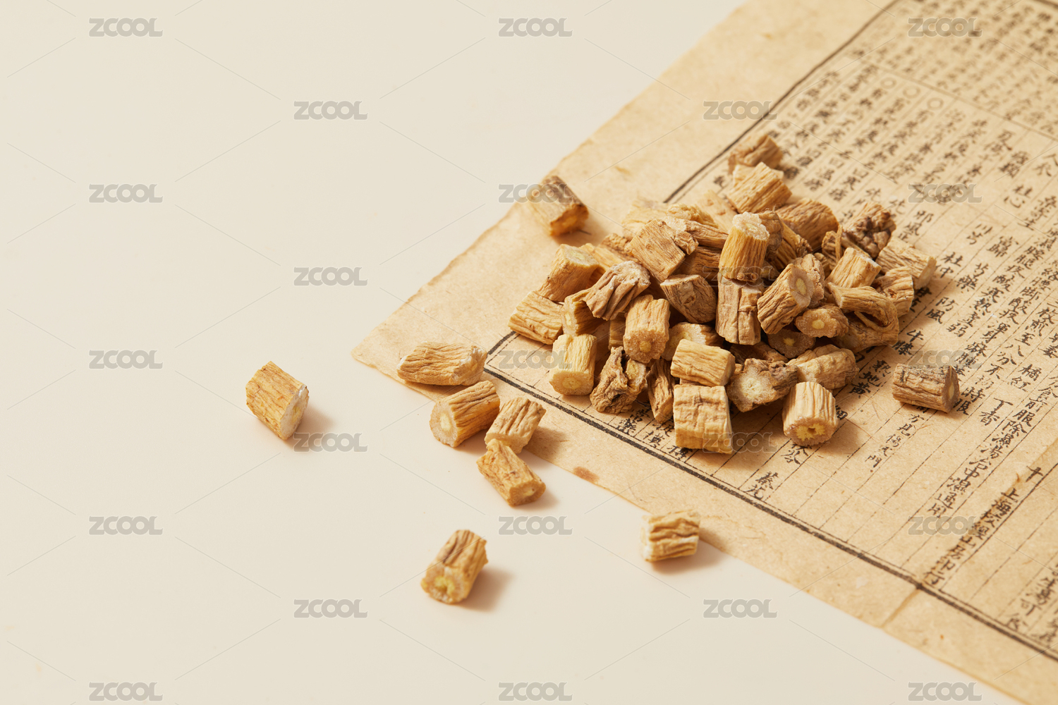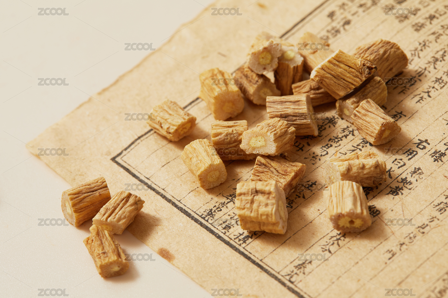 黄色背景古书上的中药材党参