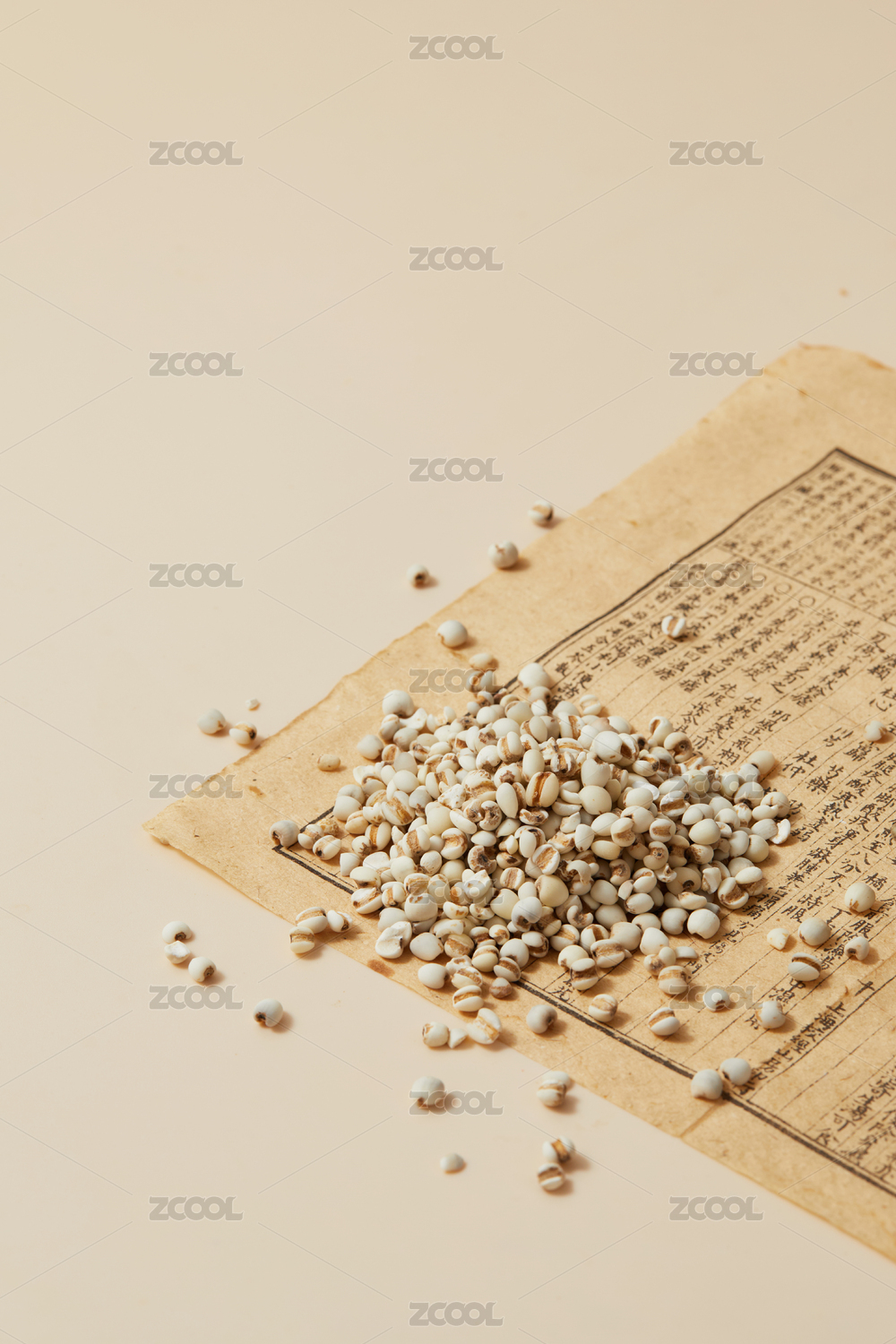 黄色背景古书上的中药材薏苡仁