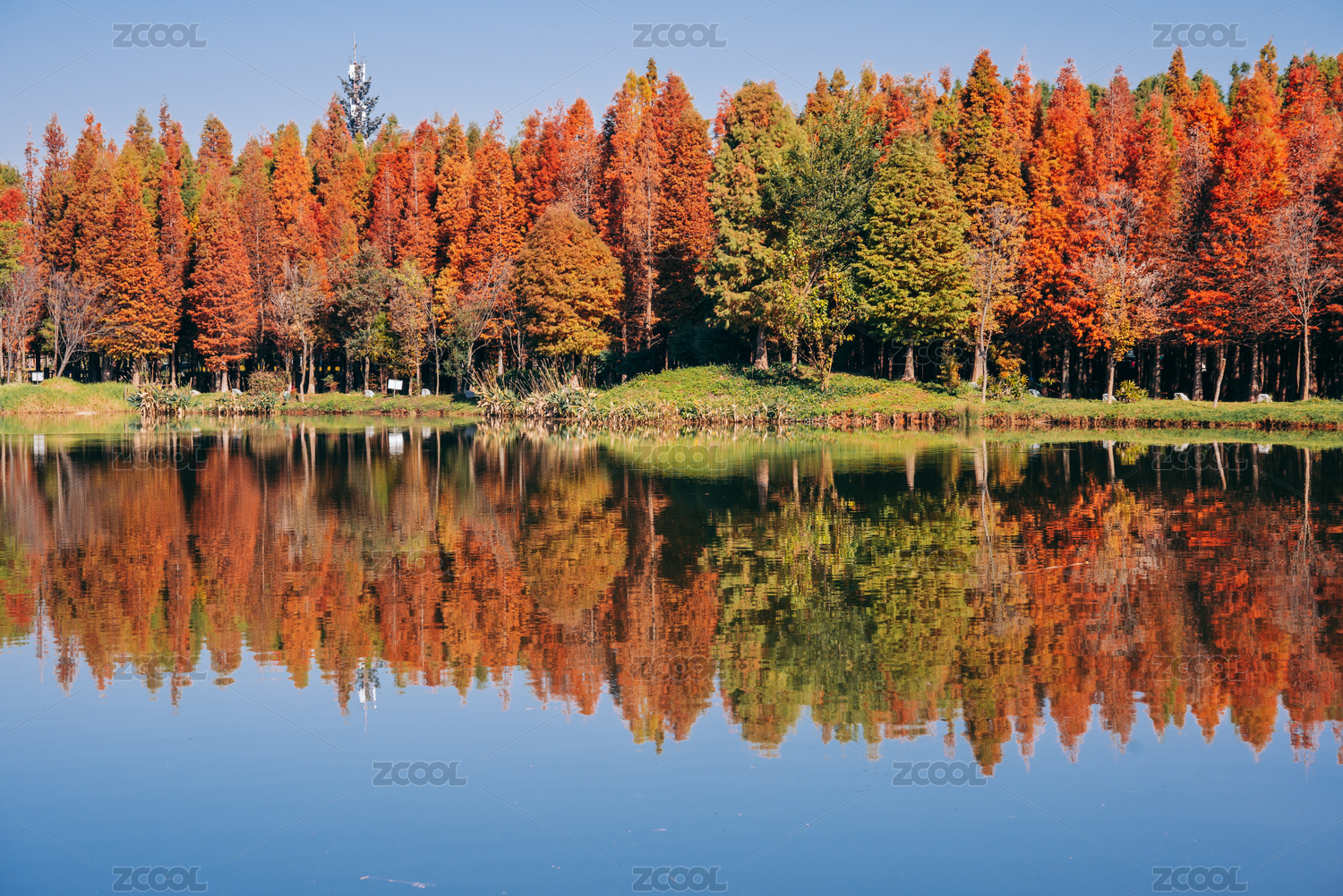 成都白鹭湾湿地公园秋季冬季水杉红叶白昼
