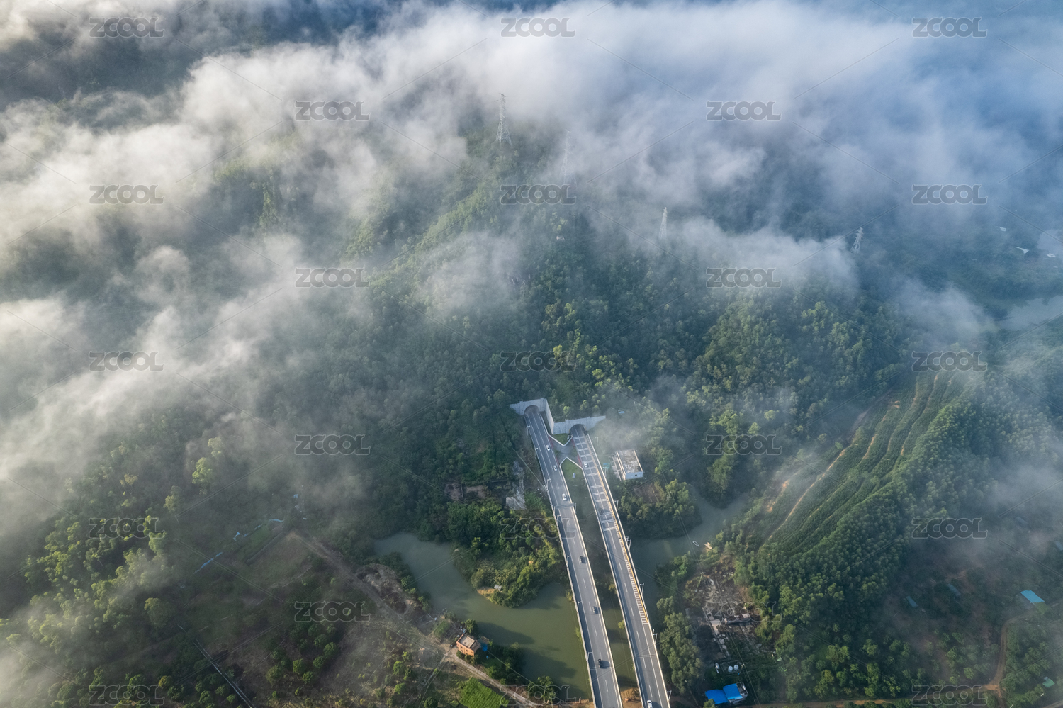 中国浙江省绍兴市新昌县航拍横跨水库的桥梁