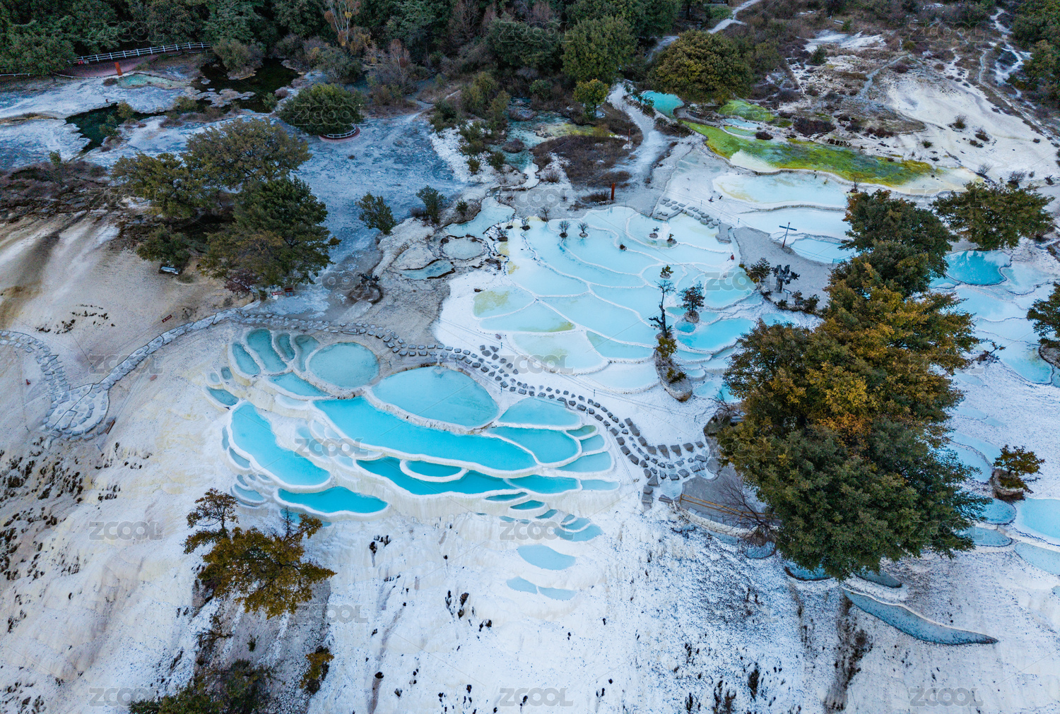 晴朗夏季午后拍摄的四川黄龙五彩池
