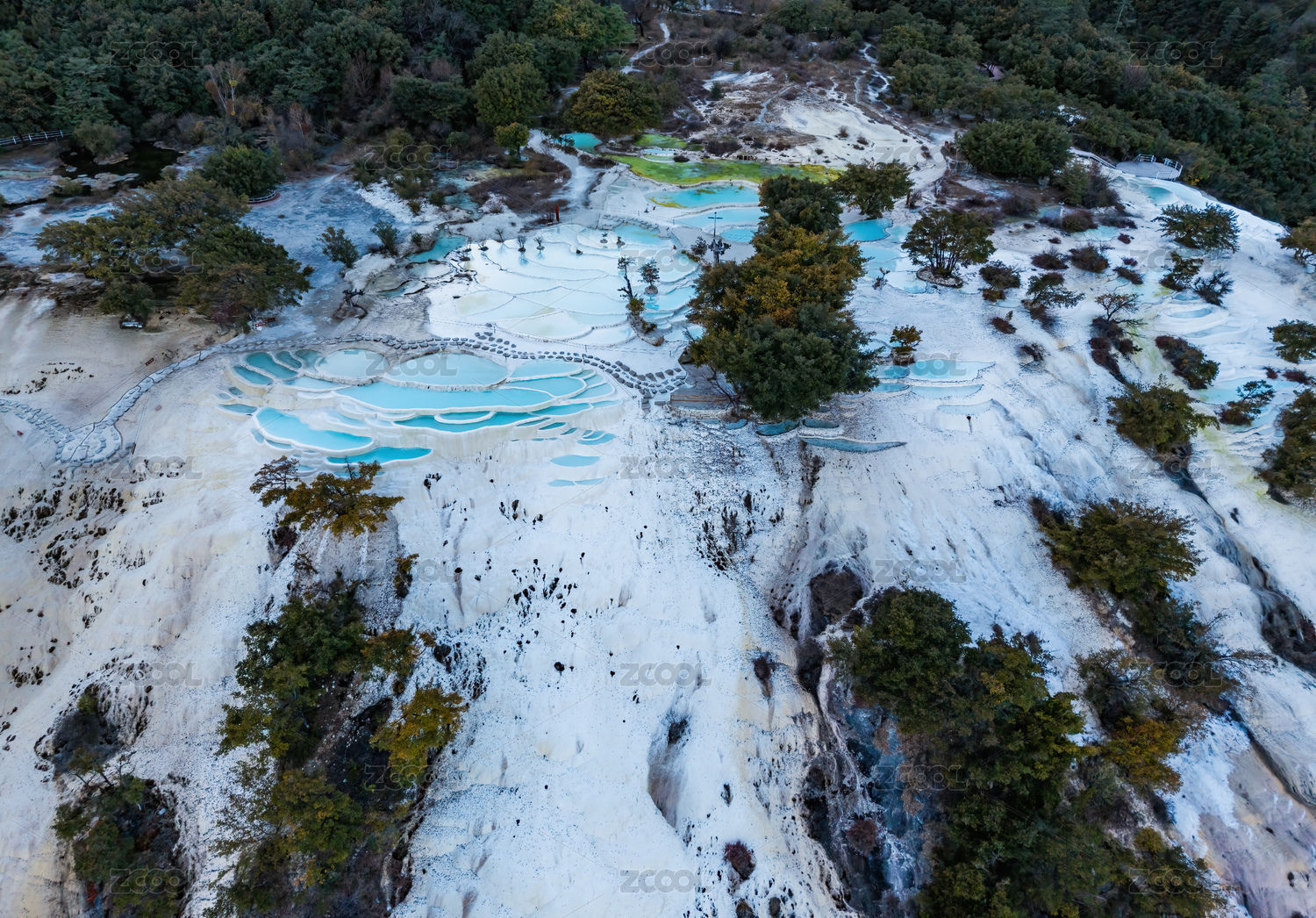 中国云南省迪庆州香格里拉市白水台景区航拍