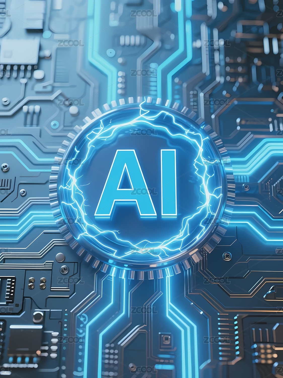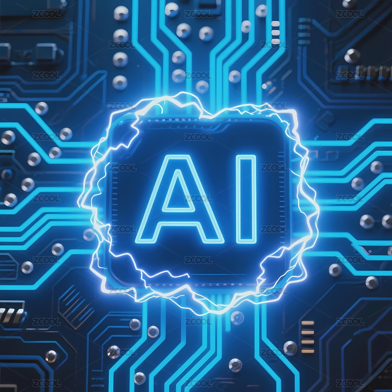 蓝色电路板上的AI标识