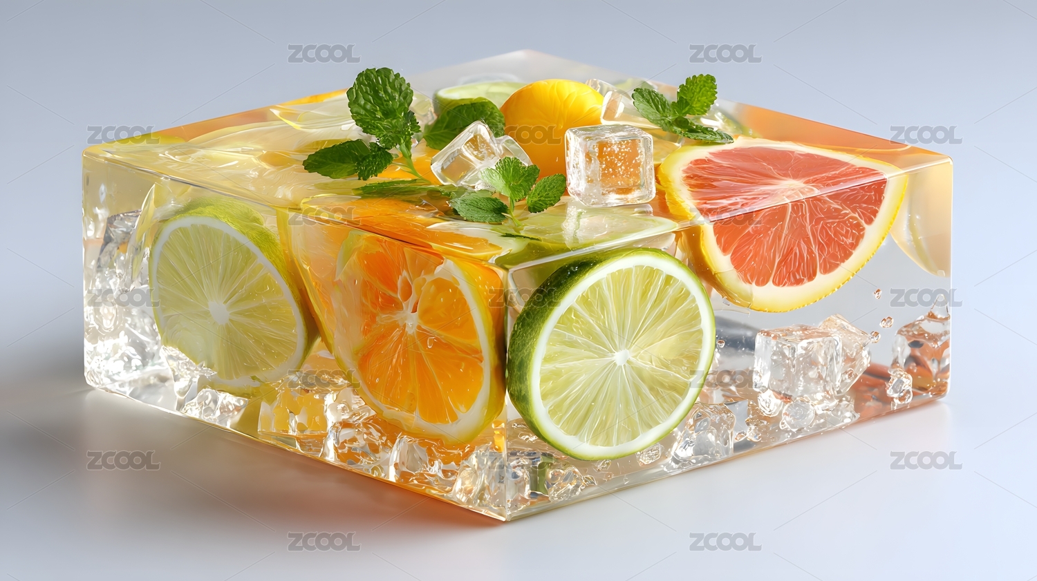 透明包装水果冰块飞舞,清新夏日风