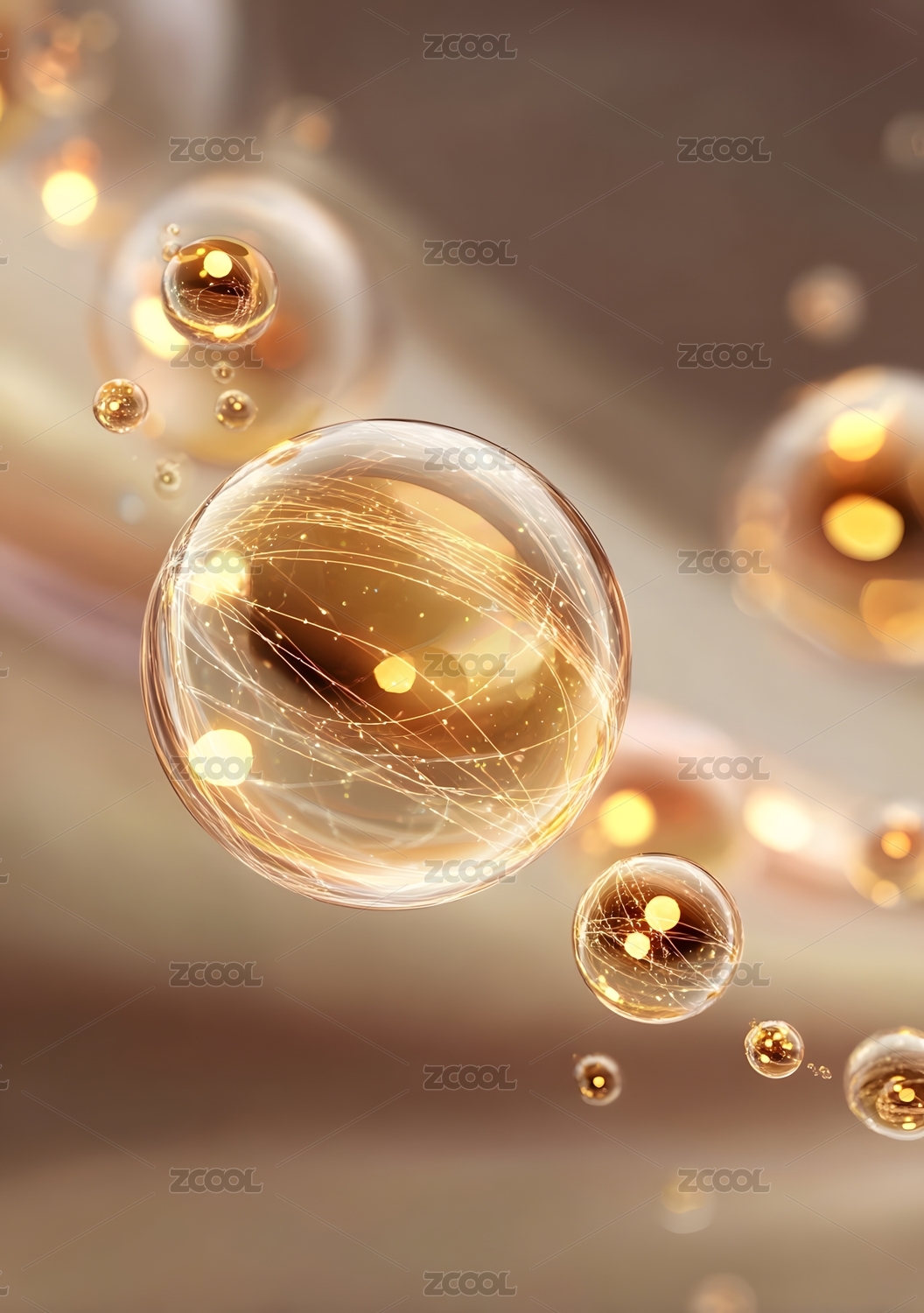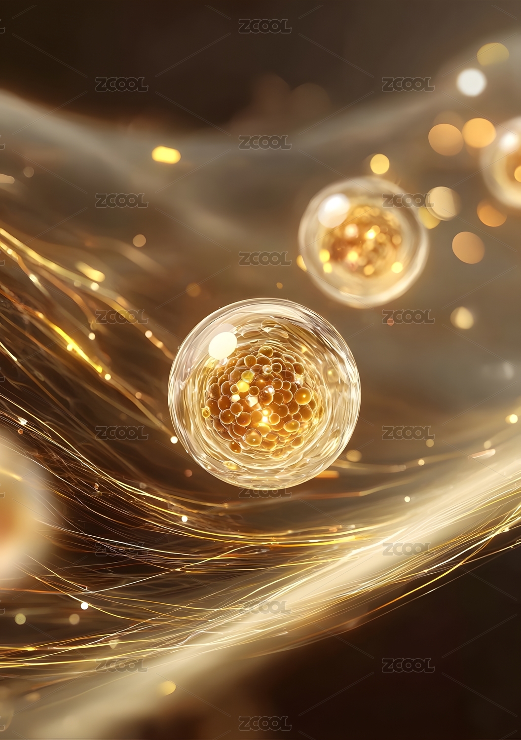 金色细胞微观世界 抽象光线营造梦幻氛围