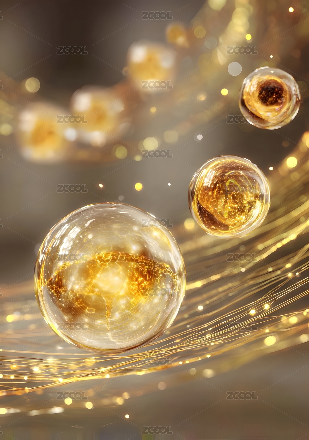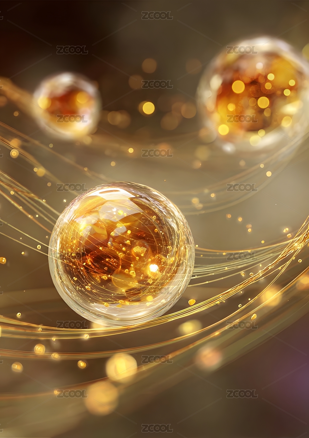 金光闪耀的球体在抽象背景中舞动,光影交织