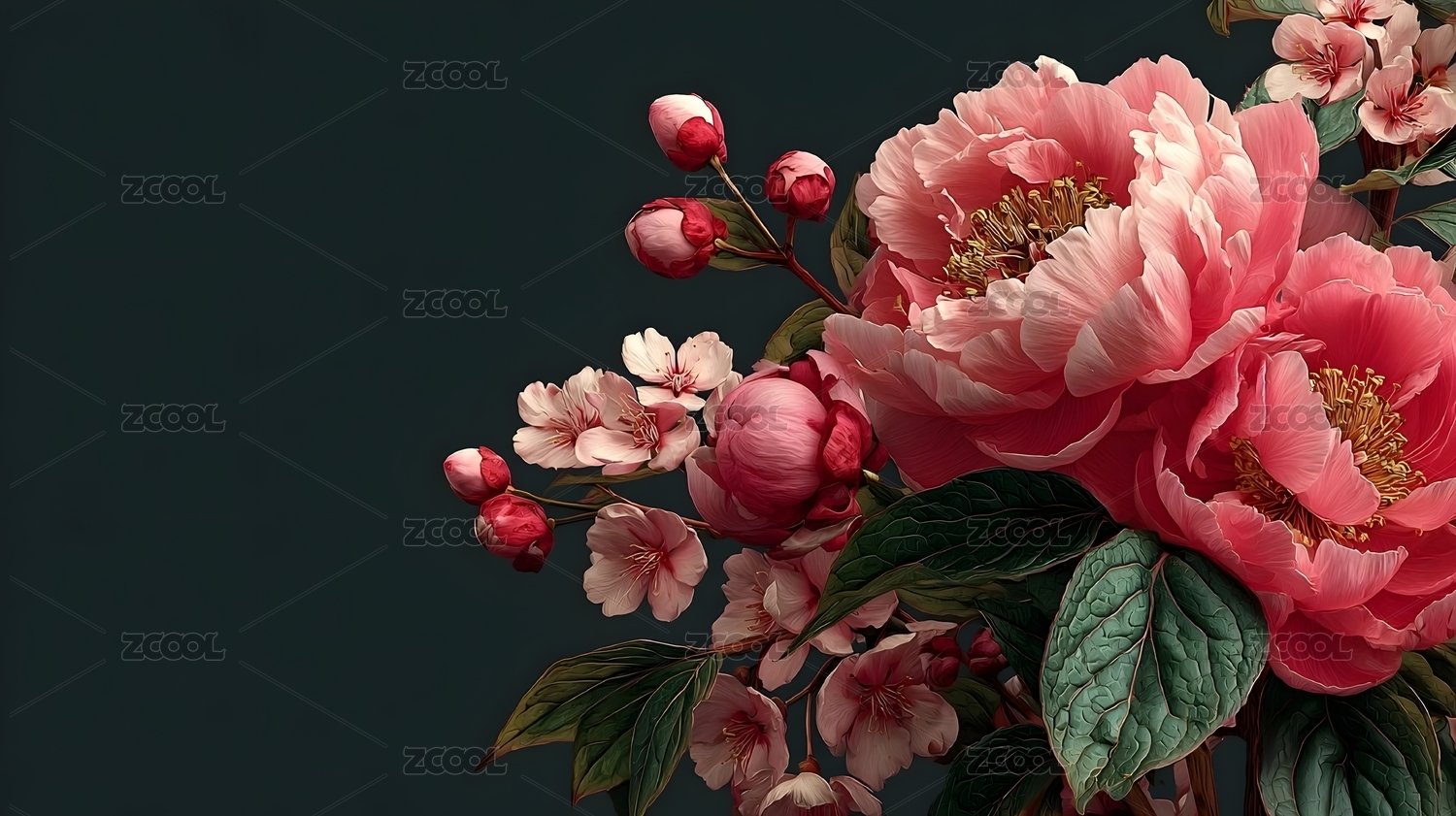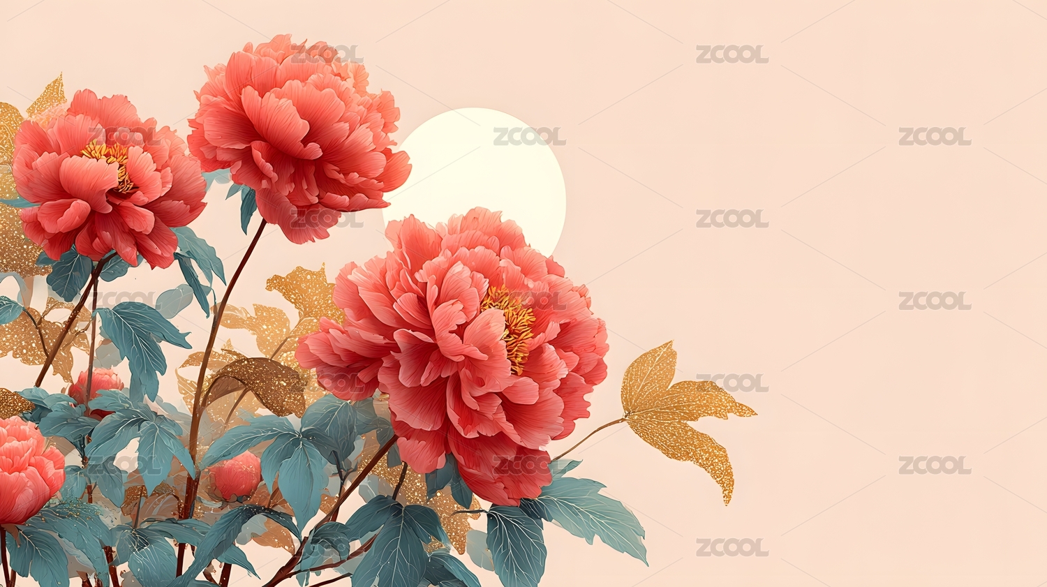 牡丹,水墨,写意,盛开,花卉,淡雅,枝干,清新,东方,艺术