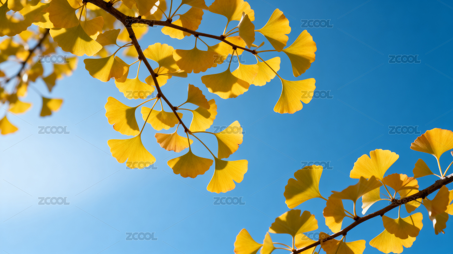 金黄银杏叶与蓝天