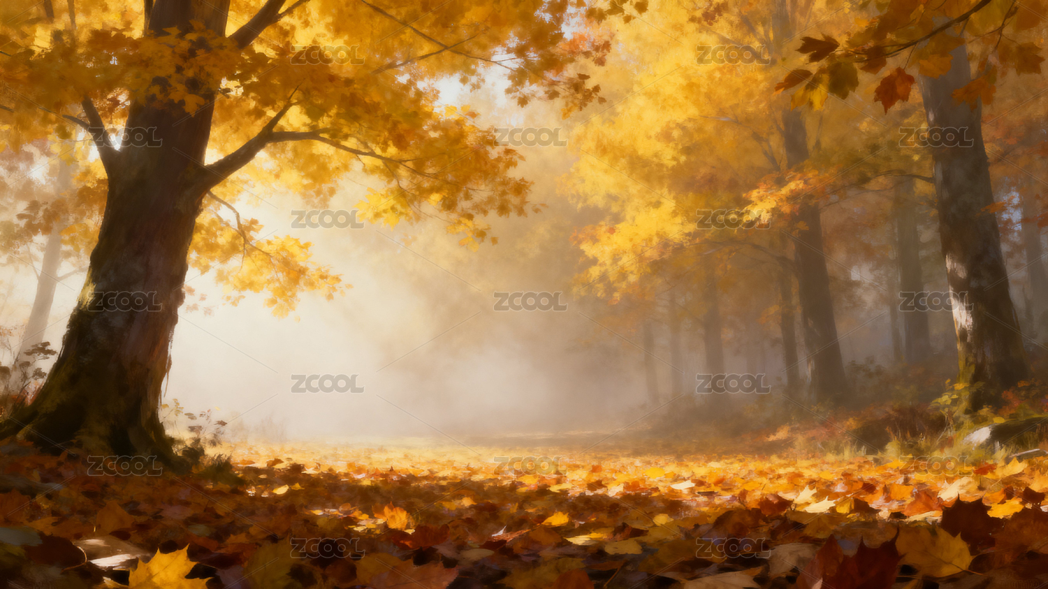 小路,落叶,树木,背景,秋天,晨雾,红叶,天空,橙黄色,景色