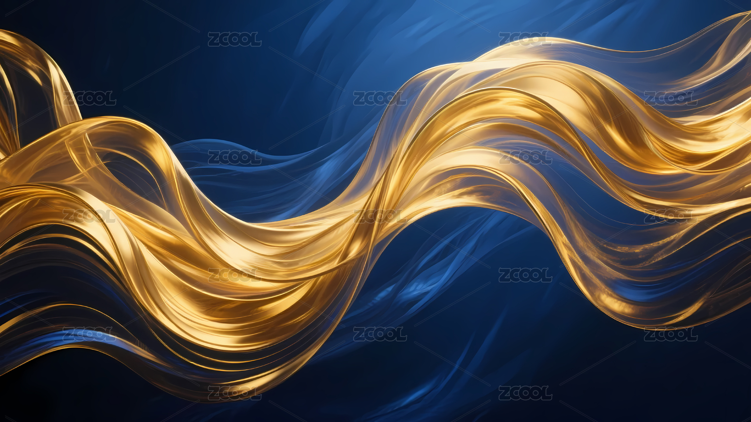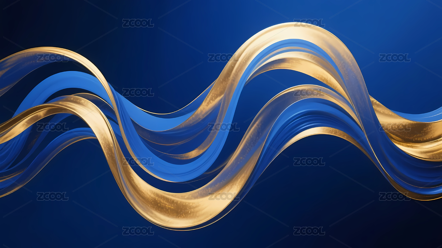 金蓝波浪深蓝背景
