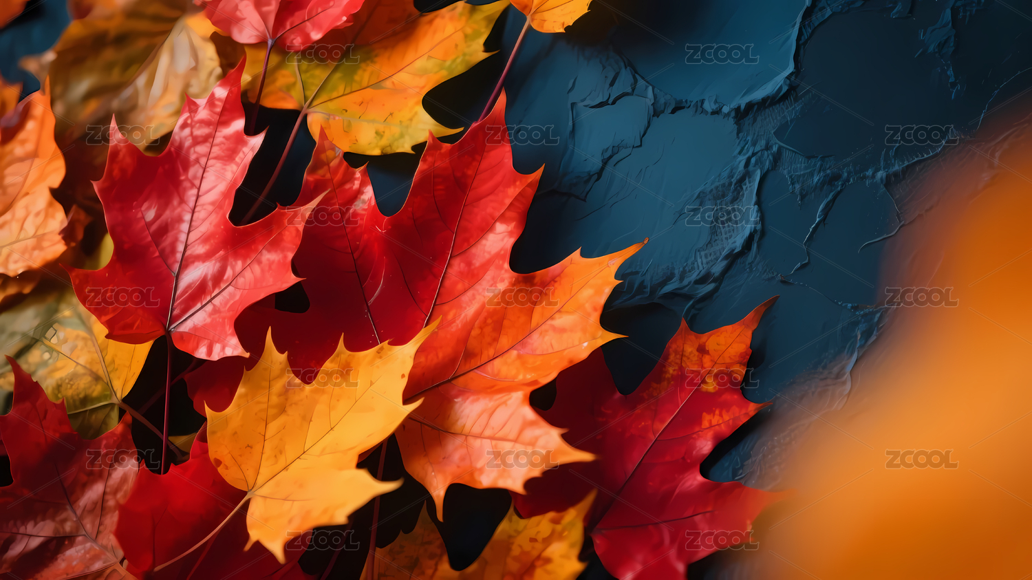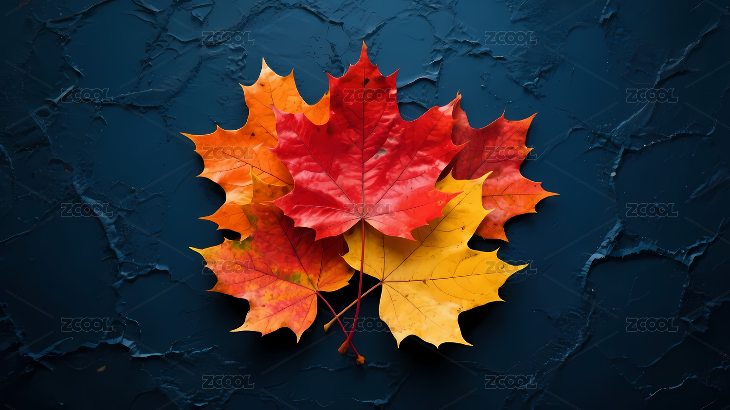 红色,绿色,背景,黄色,枫叶,装饰,深蓝,对称,左右,两侧