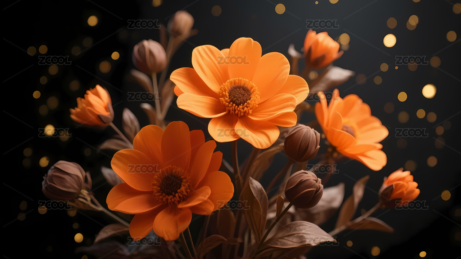 背景,金色,自然,温暖,橙色,花朵,夜空,深蓝色,梦幻,光斑