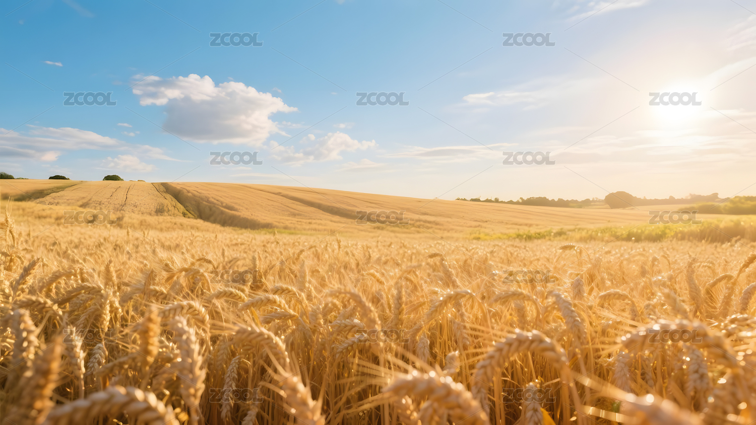金黄麦穗夕阳山丘天