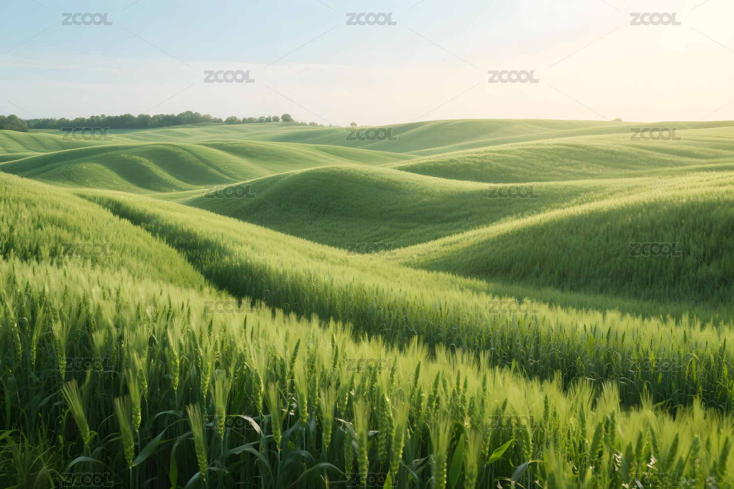 绿色波浪麦田的自然景观