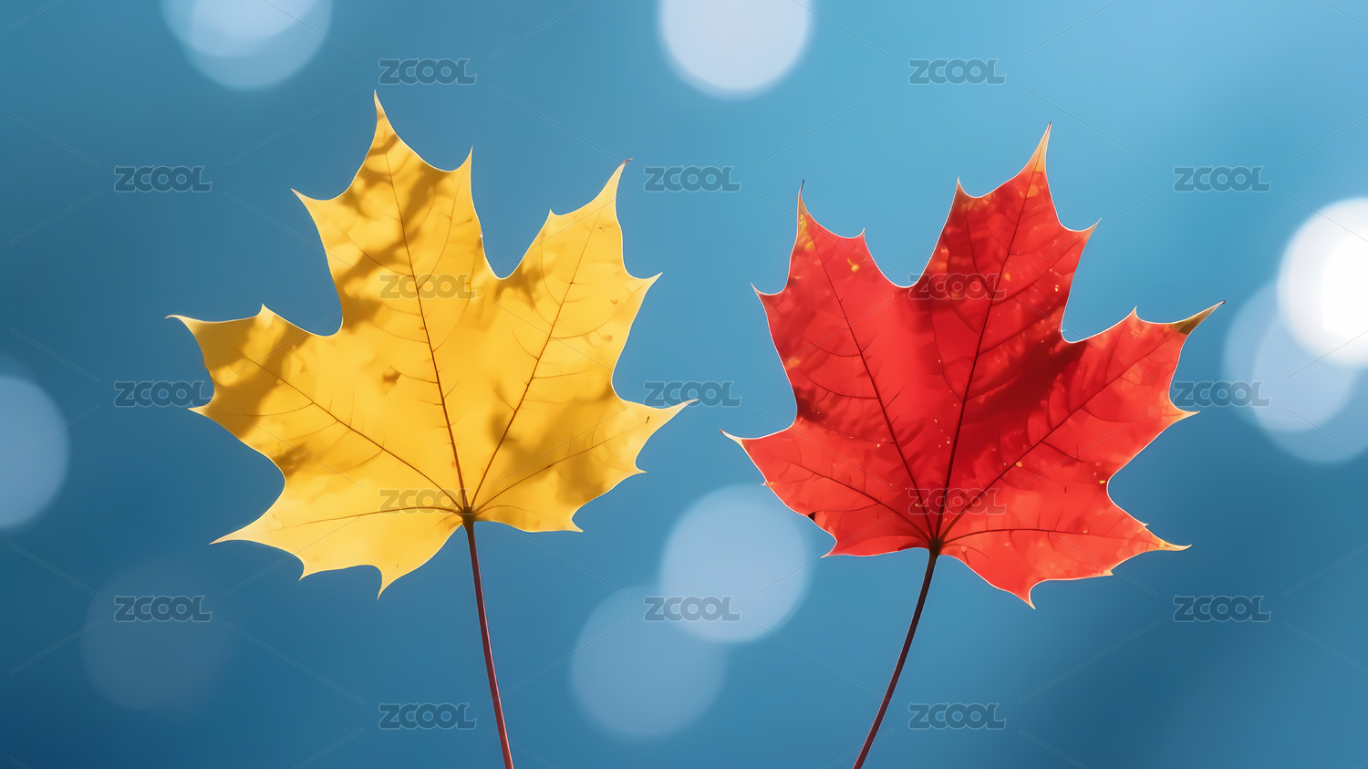 黄色,蓝色,自然,背景,秋天,颜色,红色,叶子,枫叶,模糊