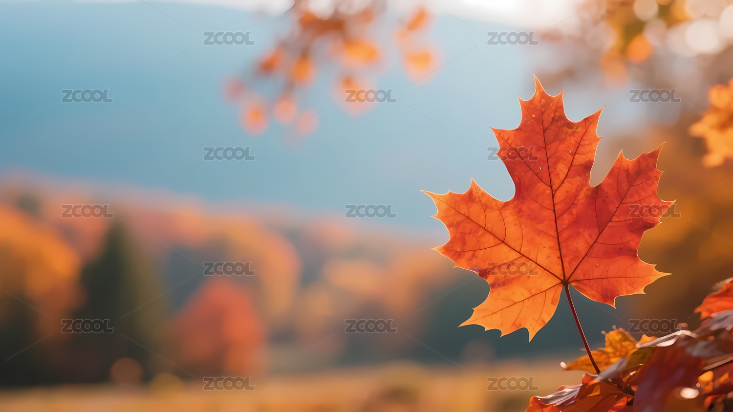 蓝天,背景,秋天,明亮,红色,自然,枫叶,模糊,湖水,山峦