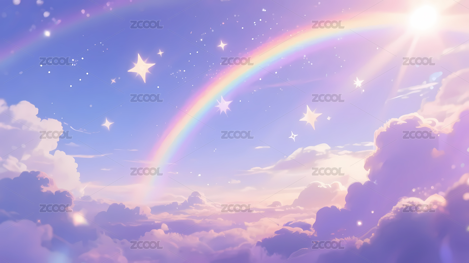 蓝天,白云,背景,鲜艳,颜色,梦幻,柔和,星星,彩虹,点缀