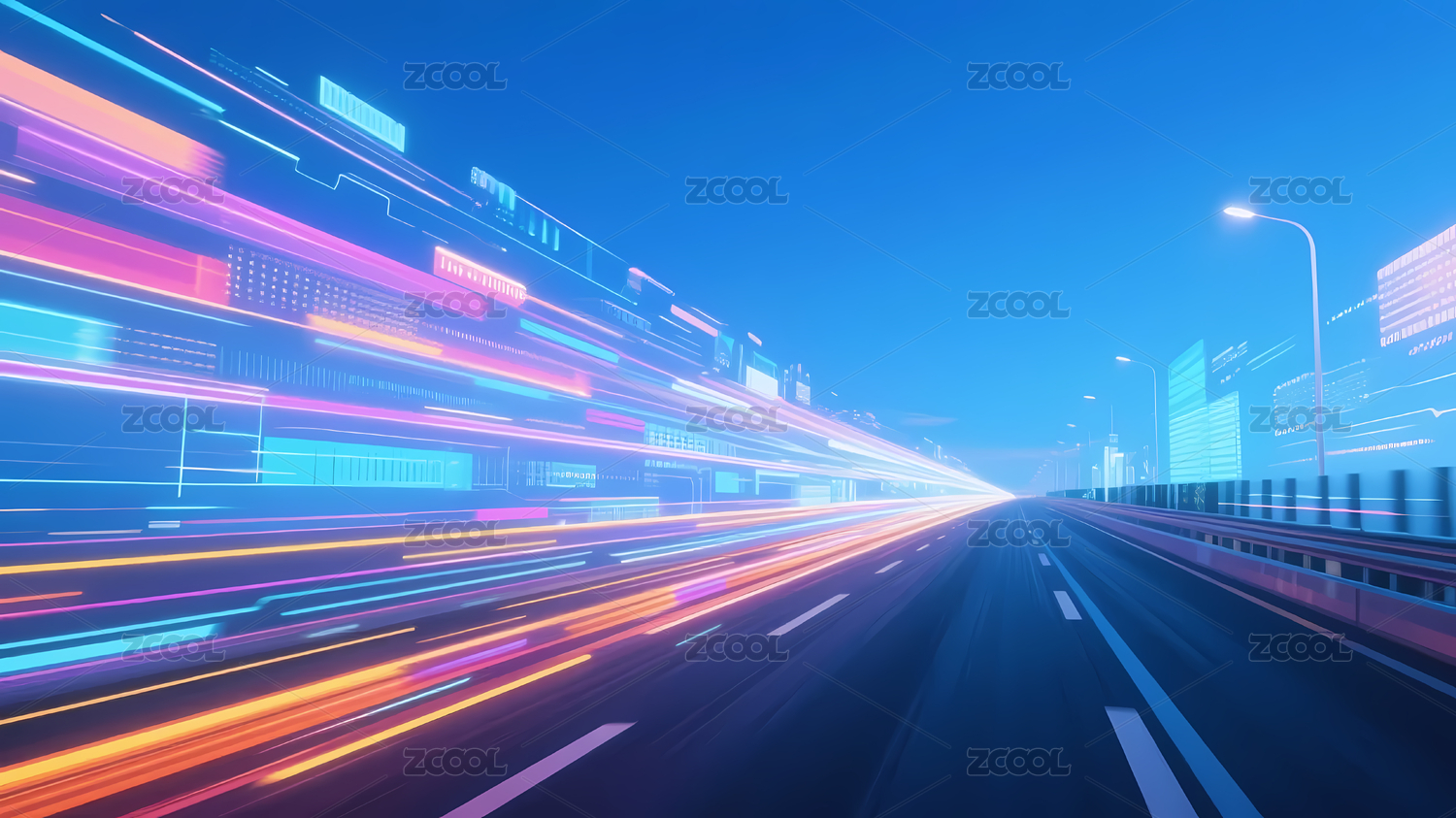 公路两侧光带渐变天空