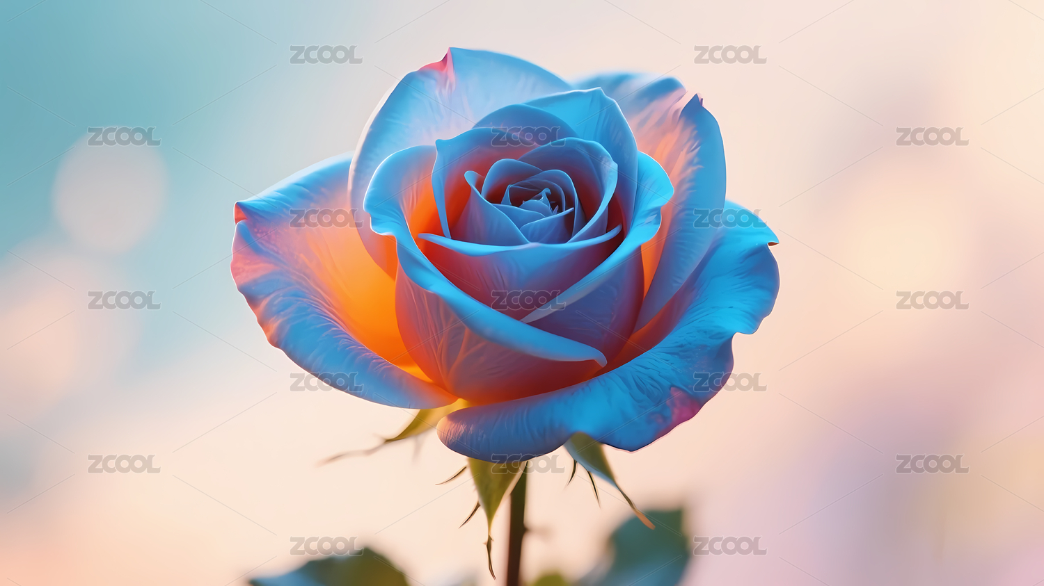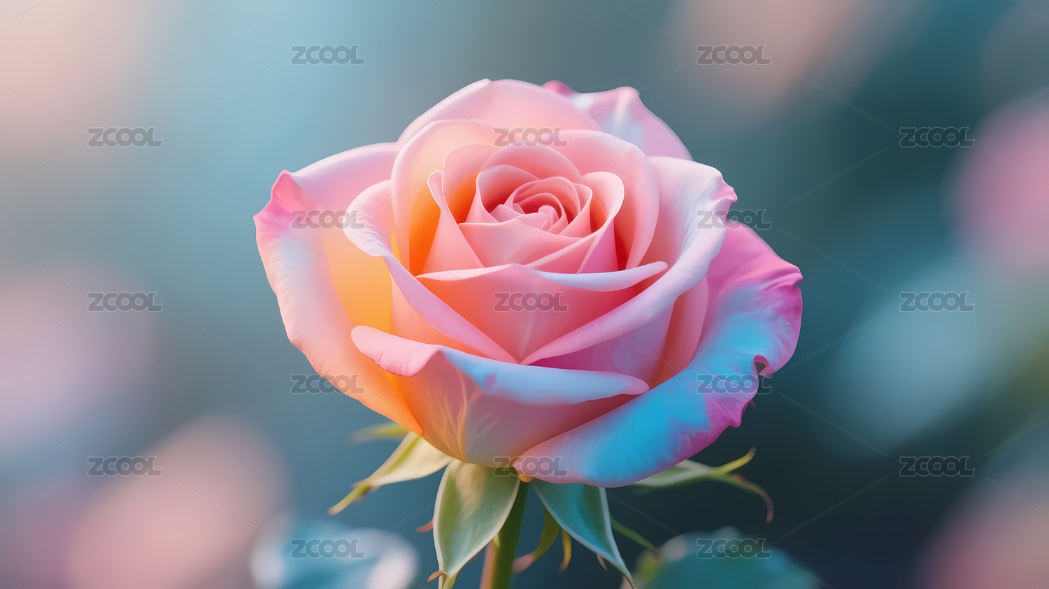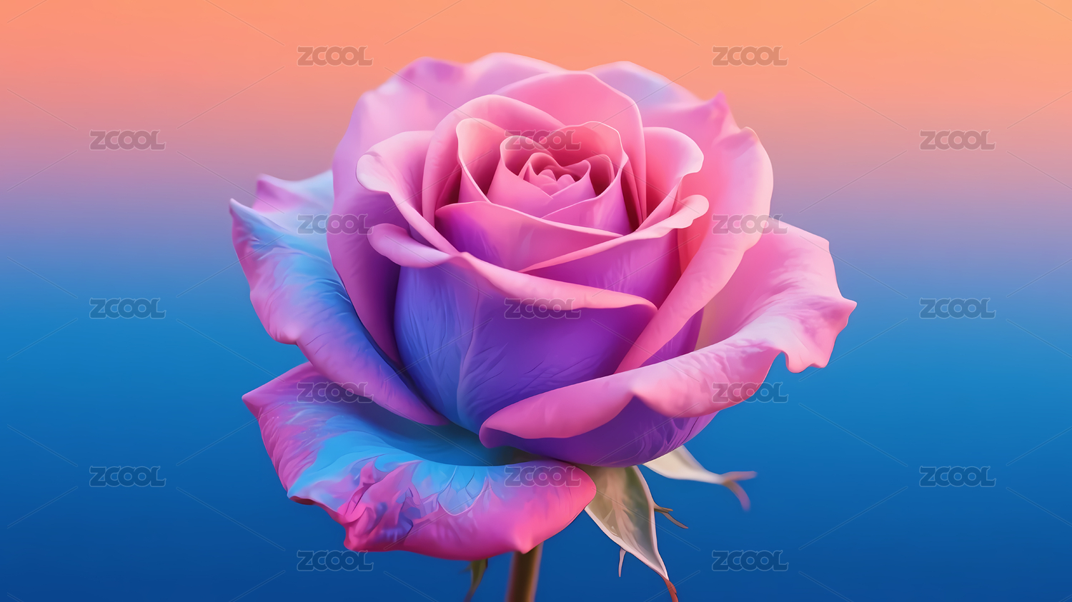 蓝色,渐变,背景,主体,柔和,粉色,梦幻,玫瑰,花,蓝紫