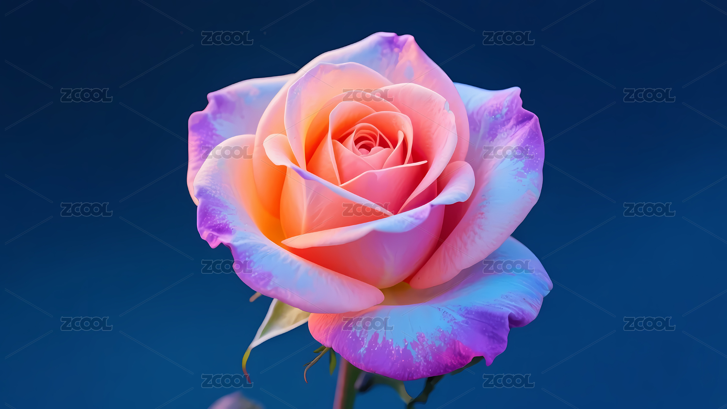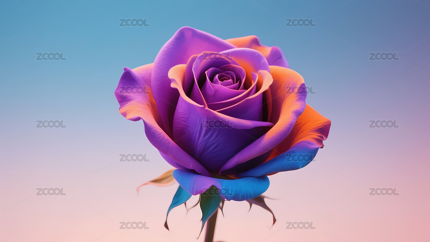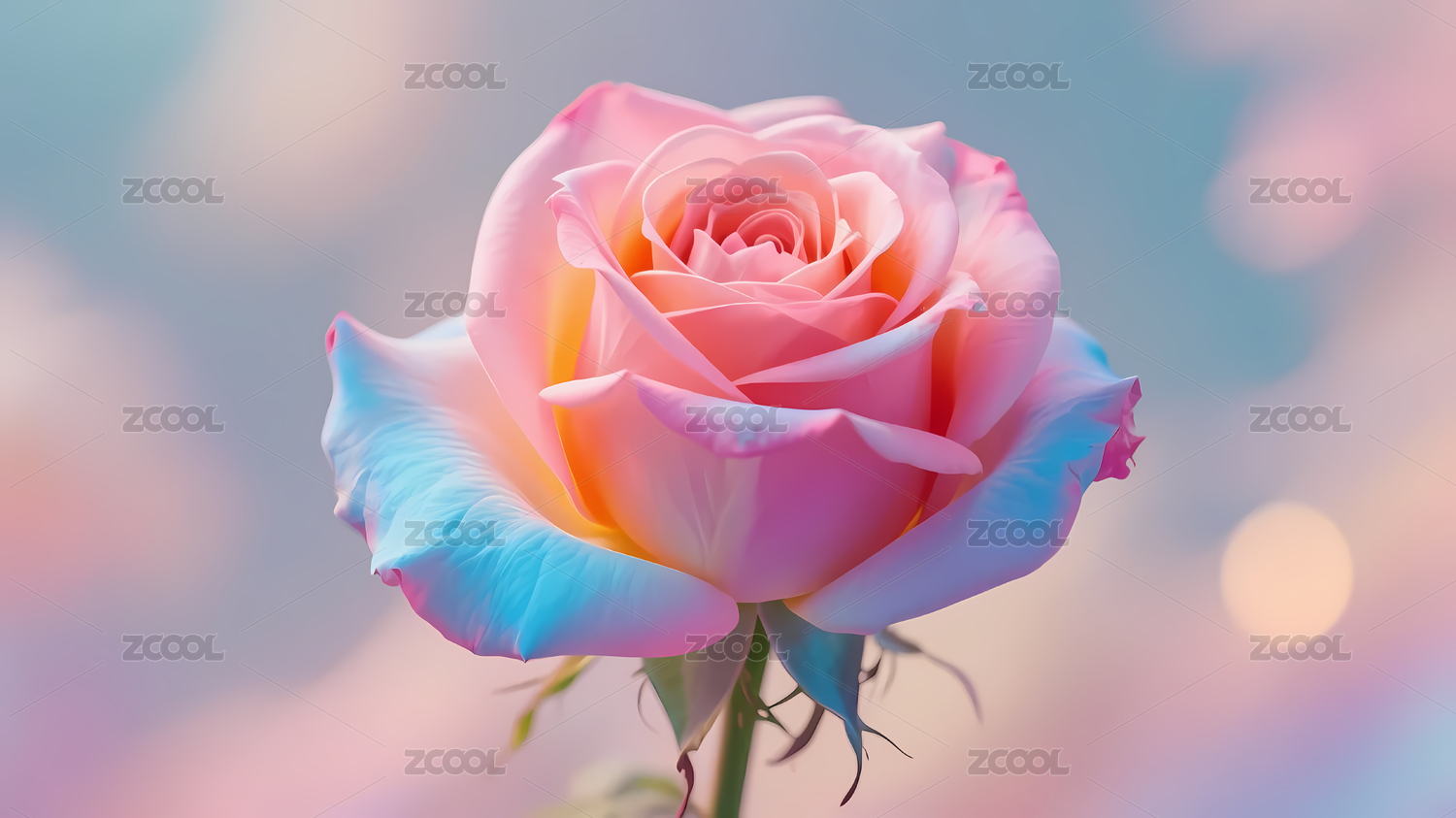 蓝色,渐变,背景,主体,柔和,粉色,梦幻,玫瑰,花,蓝紫