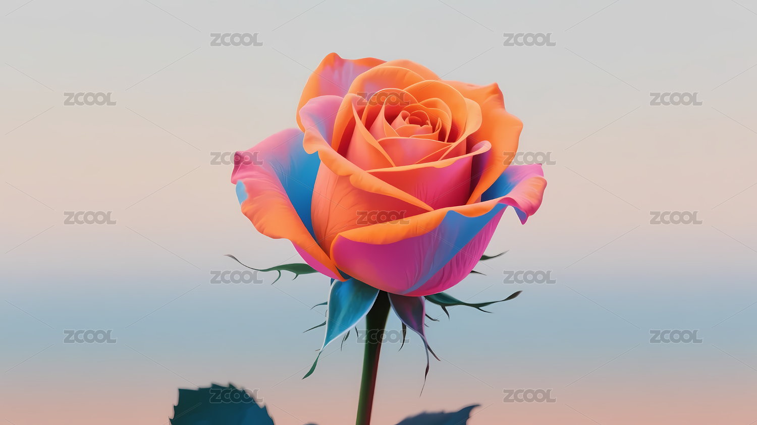 粉蓝渐变玫瑰配紫橙背景