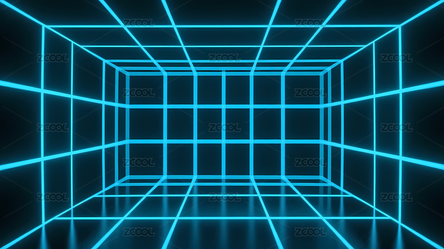 蓝色霓虹立方虚拟空间