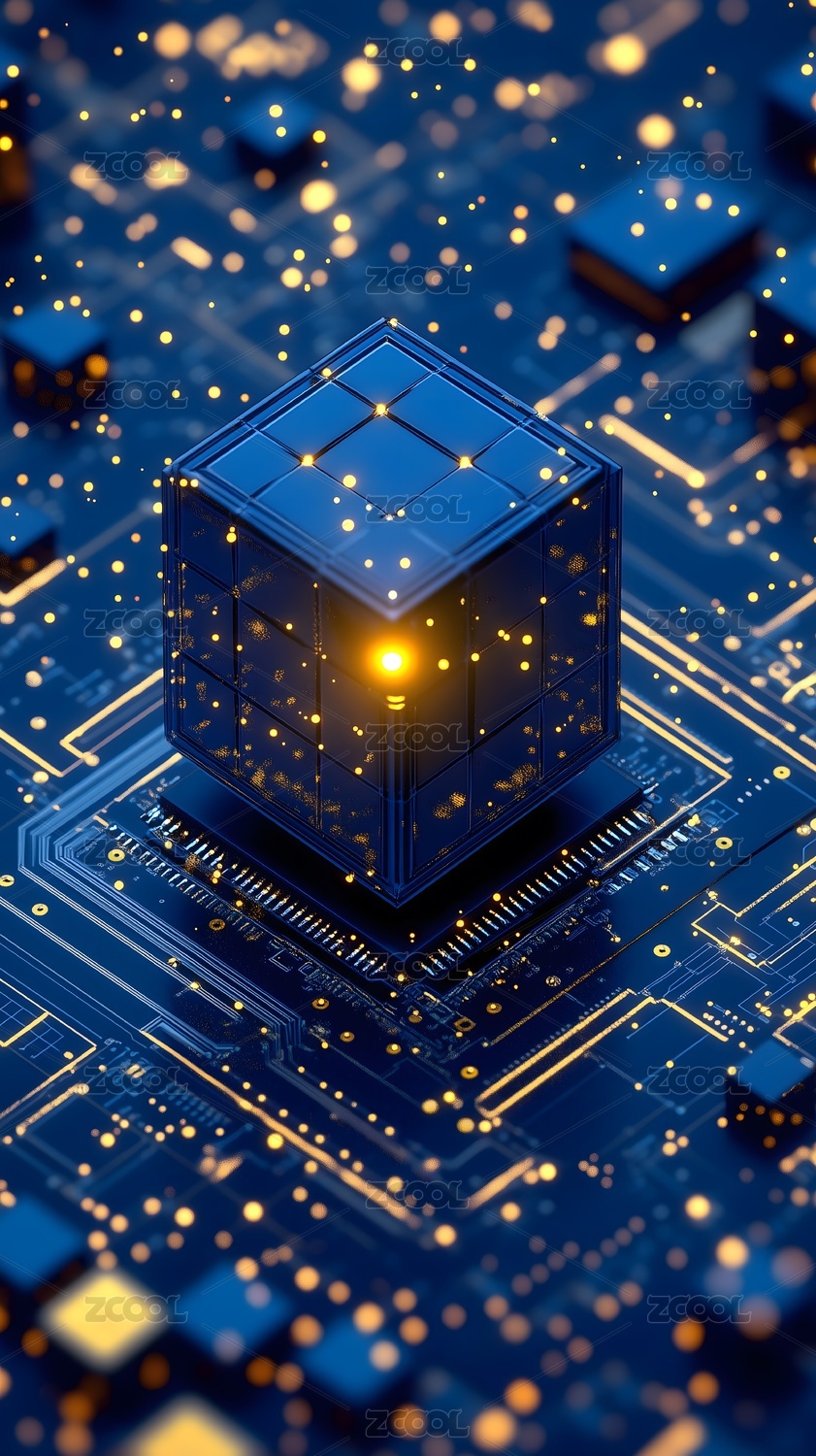 发光方块科技感芯片场景